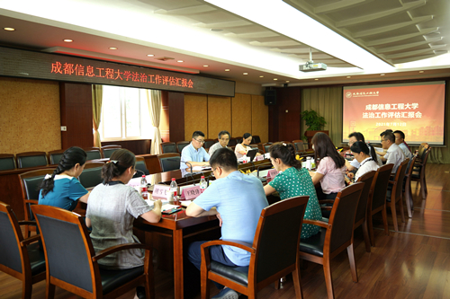学校党委办公室、校长办公室主任段黔冰从领导和工作推动机制、规章制度建设、内部治理结构、法律风险防控、师生法治教育、师生权益保护、法治工作机构和队伍建设、法治工作成效以及法治工作创新等九个方面向评估专家组报告了学校依法治校工作情况。学校纪委办公室、党委宣传部、党委教师工作部、党委学生工作部、党委保卫部、校工会等职能部门负责人结合工作实际也分别作了简要汇报。专家组与学校就法制工作相关问题进行了充分交流。