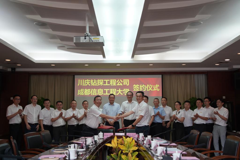 学校副校长朱明,川庆钻探工程公司党委委员、总工程师谭宾代表双方单位签署了战略合作协议。李爱民、余敏明等见证了战略合作协议签约。