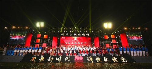 【本网讯】放歌伟大新时代,唱支山歌给党听。6月26日晚,学校庆祝中国共产党成立100周年师生合唱比赛暨2020年度“青春榜样”颁奖典礼在航空港校区第一田径场举行。本次活动由中共bv伟德国际1946委员会主办、学校党委组织部、党委宣传部、党委学生工作部、工会、团委承办。学校党委书记周激流,校长余敏明,党委副书记马洪江,省纪委监委驻校纪检监察组组长、校党委副书记、纪委书记雷超,副校长于世祥、何建新、范广洲、舒红平、朱明,党委常委、党委组织部部长、统战部部长熊建,全体中层干部、辅导员、2020年度青春榜样获得者以及22支合唱代表队等师生参加了活动。