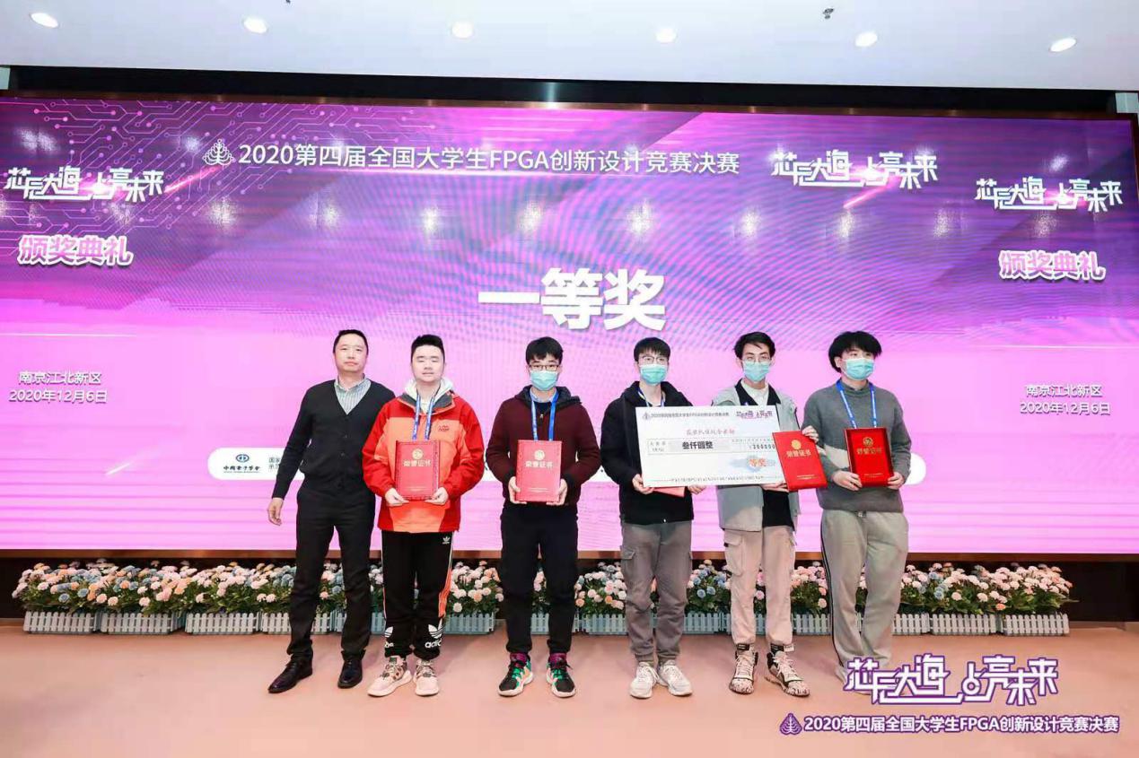 【本网讯】2020第四届全国大学生FPGA创新设计竞赛全国总决赛于2020年12月4日-6日在南京江北新区ICisC实训基地举行。此次竞赛由中国电子学会、国家级实验教学示范中心联席会电子学科组主办,东南大学、南京市江北新区管委会联合承办。本届竞赛共有包括清华大学、北京大学等在内的131所高校的900多支队伍报名参赛。伟德官网通信工程学院(微电子学院)李蠡副教授指导的研究生相博镪、胡双、邹金成团队设计的名为“一种含基于GRU网络硬件加速器的AI编曲SoC”的参赛作品在初赛中脱颖而出,进入全国总决赛。与来自全国各地的139支参赛队伍,近408名参赛选手在南京同场竞技。该团队所完成的作品以较高的科研性、完成度以及创新性,荣获全国一等奖、最佳创意奖两项大奖。bv伟德国际1946在此次竞赛中积极参与和有效组织,获得了优秀组织奖。