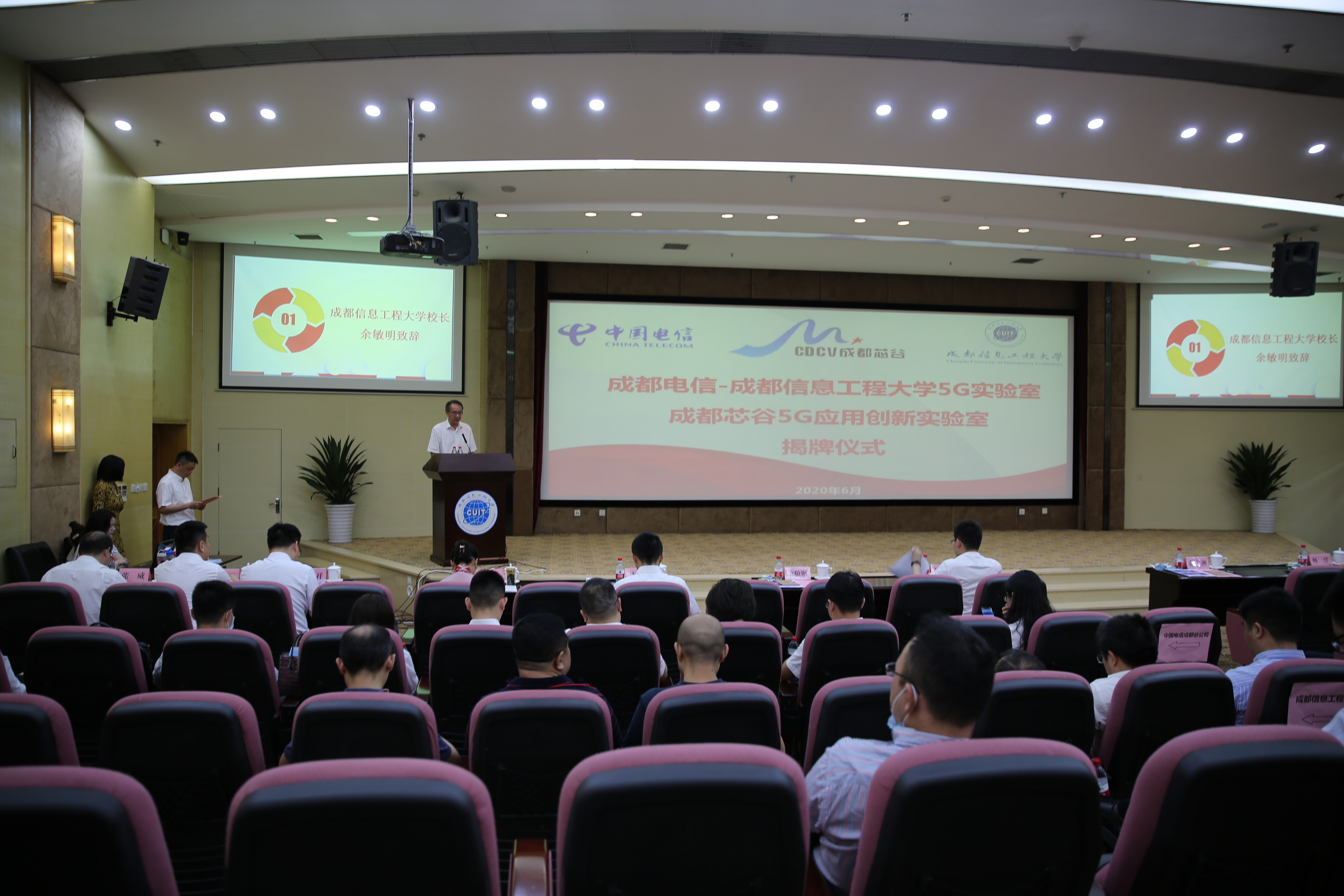 【本网讯】6月9日,西部首个校企地5G实验室——成都电信-bv伟德国际19465G实验室、成都芯谷5G应用创新实验室揭牌仪式在学校航空港校区国际会议厅举行。学校副校长范广洲主持仪式。