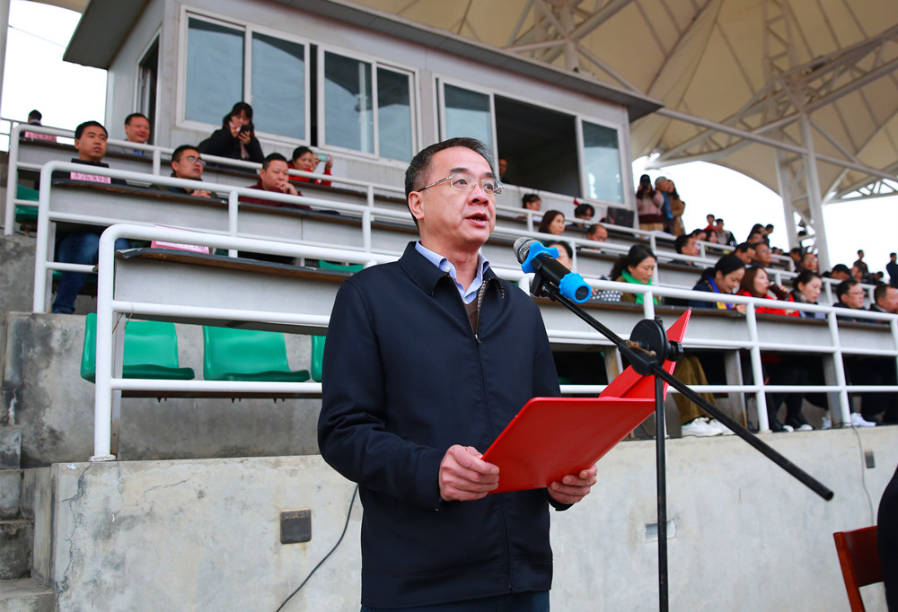 余敏明在开幕式上致辞。他谈到,发展体育事业是社会主义精神文明建设的一部分,是增强广大师生身体素质的重要环节,学校运动会的举办更是对学校体育工作成果的充分展示以及运动水平和质量的大检阅。他希望大家齐心协力,将本届田径运动会办成文明、团结的体育盛会,并将这种拼搏、进取、协作的体育精神带到今后的学习、工作和生活中,取得更大的成绩。