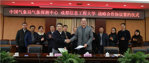 【本网讯】1月4日上午,学校与中国气象局气象探测中心战略合作协议签约仪式在学校行政楼七会议室举行。校长余敏明、气象探测中心主任李良序参加签约仪式。副校长马洪江主持签约仪式。