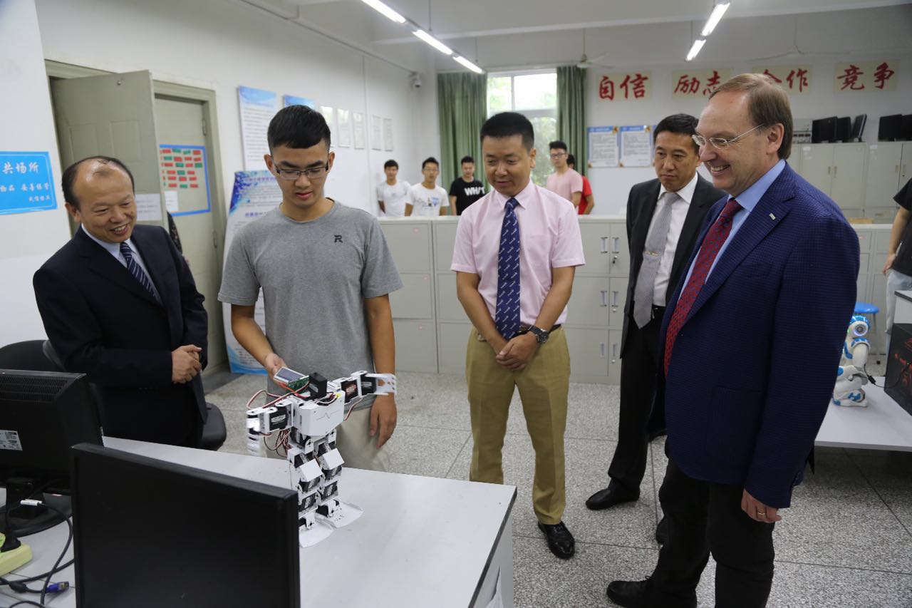 会上,余敏明对来宾表示热烈欢迎,并介绍了伟德官网基本情况。Wolrad Rommel校长介绍了德国萨尔兰工程和经济应用技术大学基本情况,以及在成都建立国际校区的初步设想。随后,Wolrad Rommel校长一行参观了控制工程学院专业实验室、学生创新实验室、信息学科群实验室、大气科学学院和电子工程学院实验室。