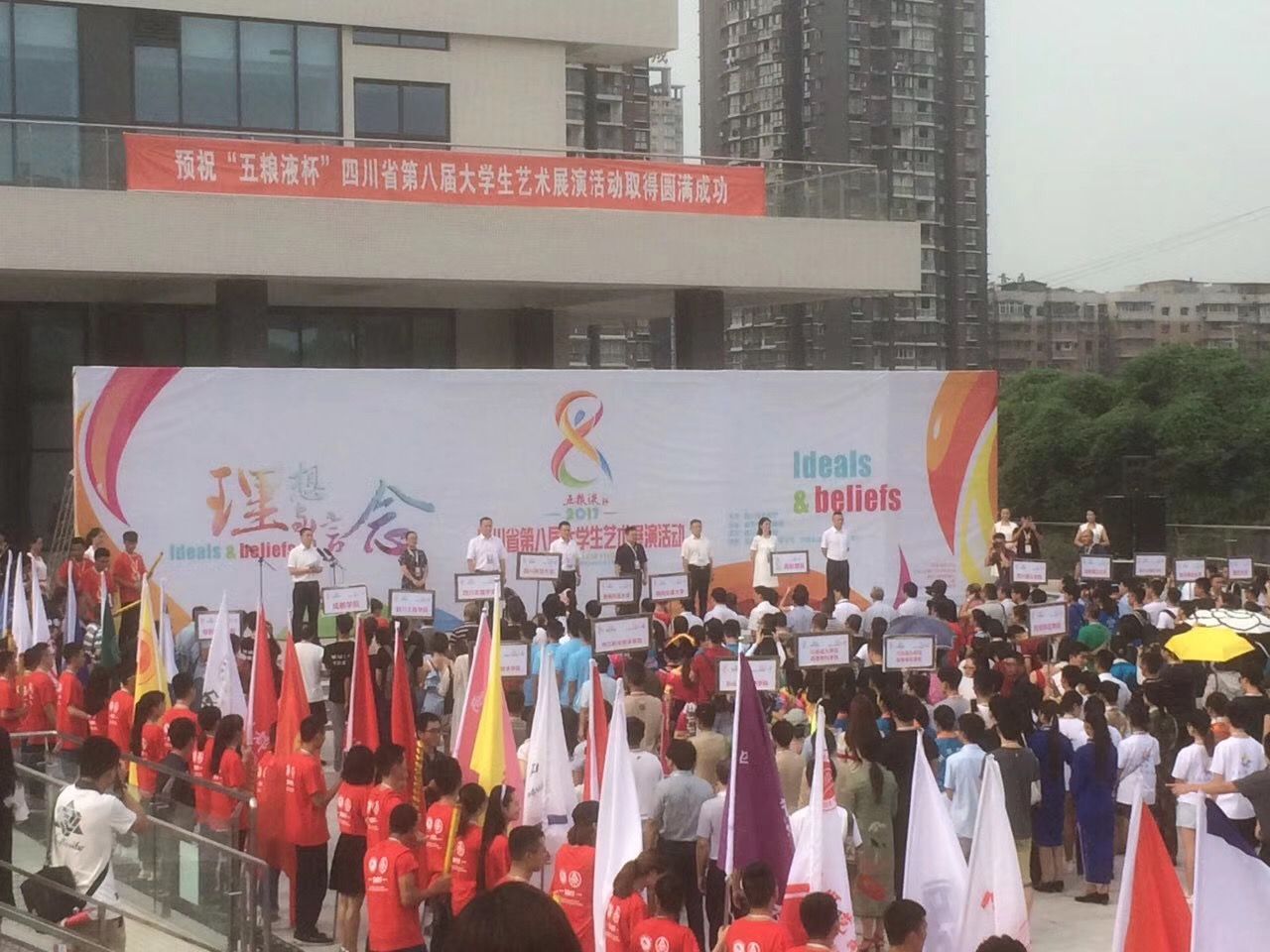 四川省大学生艺术展演活动是规格高、规模大、影响广的大学生艺术盛会,每三年举办一届,本届展演活动以“理想与信念”为主题,展演分为艺术表演类、大学生艺术实践工作坊、艺术作品类、高校艺术教育科研论文报告四大类。活动从启动到闭幕历时10个月。学校对本届展演活动予以了高度重视,校团委结合展演有关要求,于去年下半年启动各项准备工作。数月来,校团委一方面通过学校第八届大学生文化艺术节各项活动和文化艺术学院艺术设计类专业,进行了书法美术摄影和论文报告等展示类作品的征集、遴选和指导完善;另一方面邀请校内外相关领域专家、老师,结合伟德官网实际进行表演类的作品创作编排,担任节目的指导教师,对从大学生艺术团、艺术类学生社团中选拔出的学生演员进行长达数月的艰苦训练,并克服了天气、时间和场地等带来的诸多不利影响。