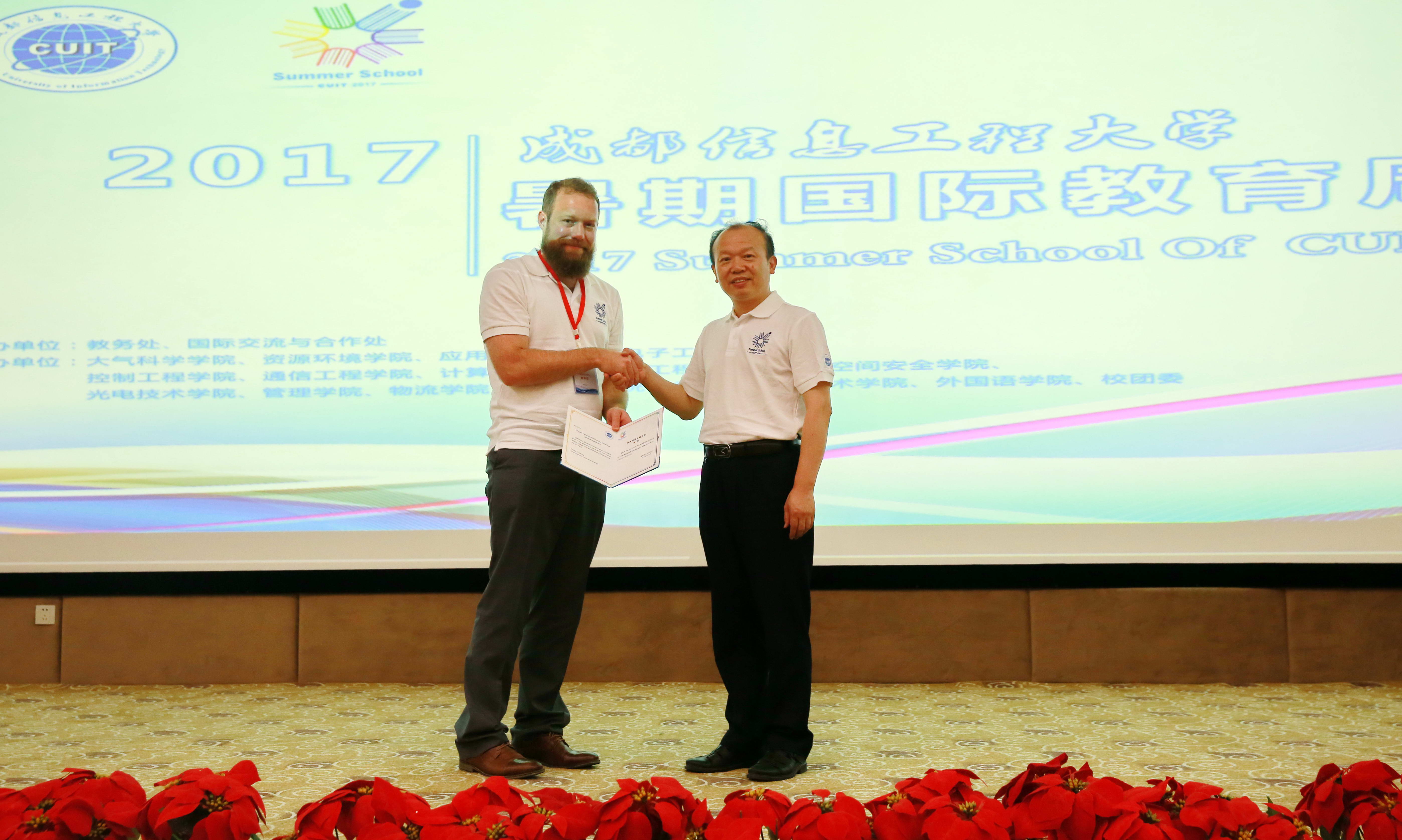 【本网讯】7月12日,学校2017年暑期国际教育周(2017 Summer School of CUIT)在学校国际会议厅盛大开幕。本次暑期国际教育周邀请了11个国家的21位外籍专家,分别来自哥伦比亚大学、美国科罗拉多州立大学、皇家墨尔本理工学院等国际知名学府,全体外籍专家与16个学院学生代表齐聚一堂,共同开启了此次活动。学校副校长何建新以及学校有关单位负责人参加了开幕式。
