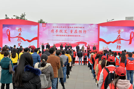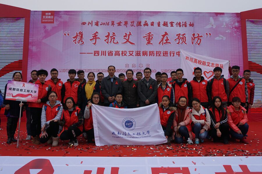 【本网讯】12月1日上午,四川省2016年世界艾滋病日“携手抗艾,重在预防”主题宣传活动在四川大学江安校区青春广场举行。学校副校长于世祥,学生工作处、后勤管理处、校团委、校卫生防疫保健中心负责人以及伟德官网防艾志愿者服务队参加了活动启动仪式。