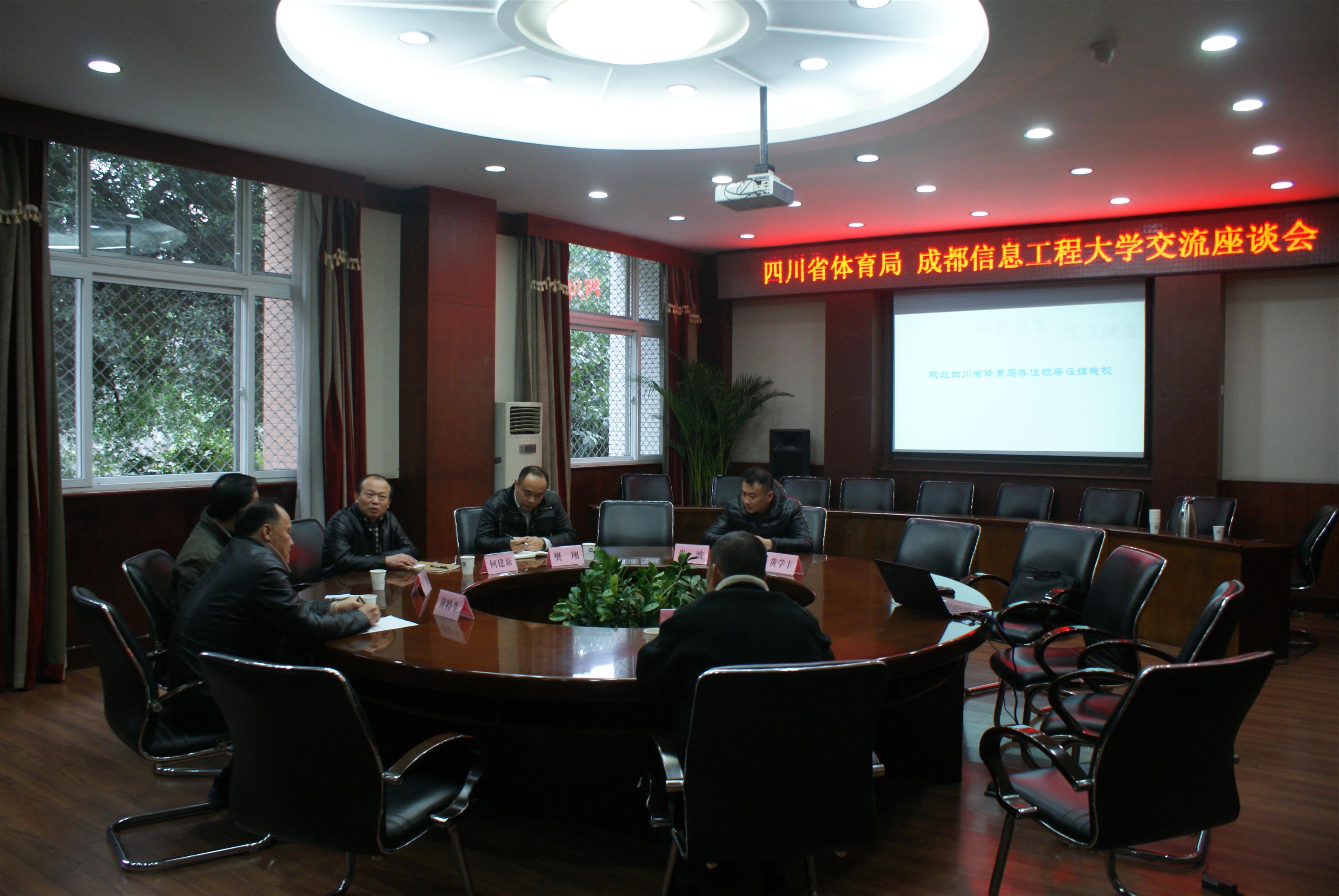 【本网讯】11月22日下午,四川省体育局副局长刘践、竞赛处处长黄特生、拳跆中心主任康翔一行来伟德官网进行工作交流。学校副校长何建新,体育部副主任樊翔、体育部党政办、教务办负责人与刘践一行进行了会谈。