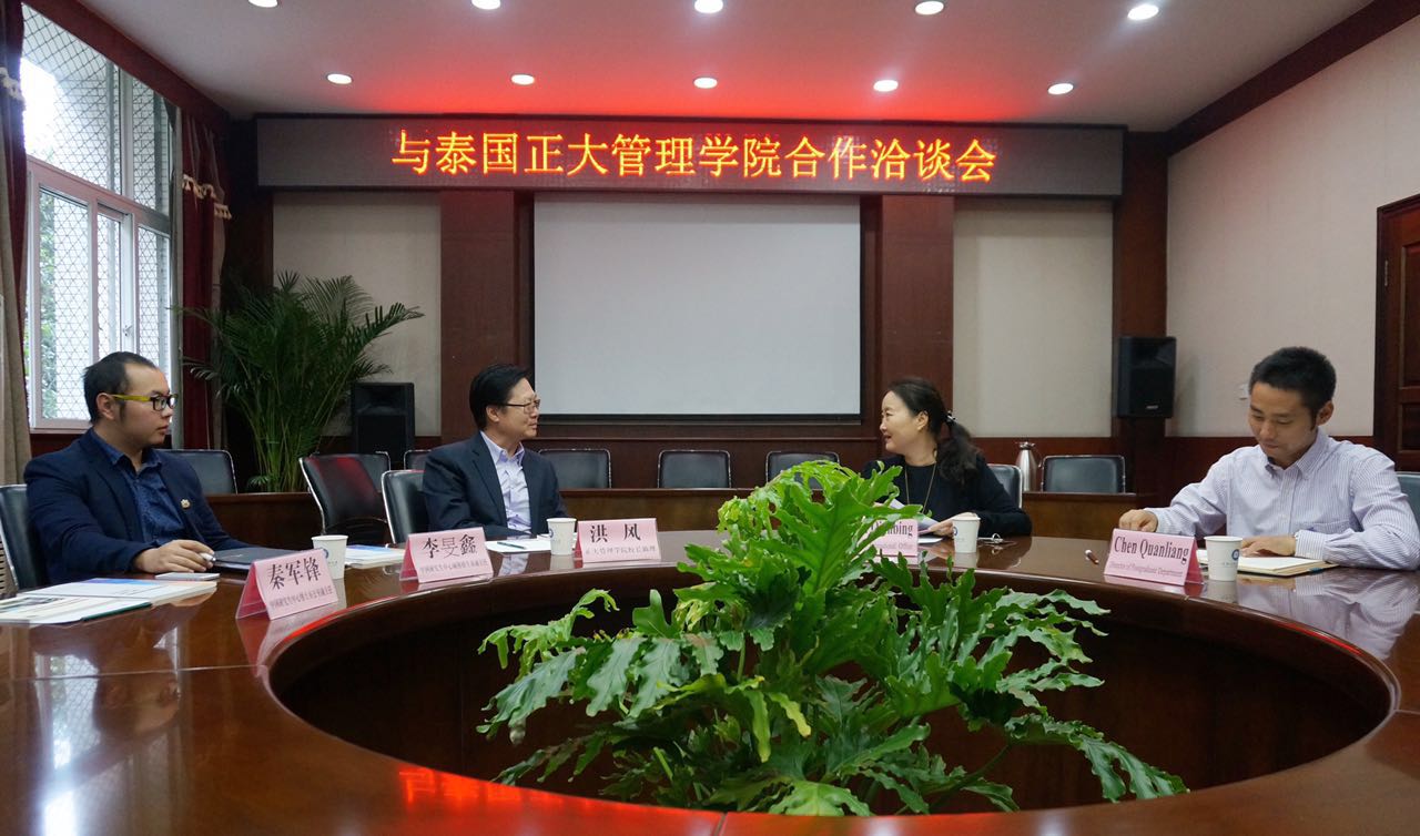 【本网讯】10月9日,泰国正大管理学院校长助理洪风,中国研究生中心硕博招生办副主任李旻鑫一行来伟德官网访问交流。国际交流与合作处处长段黔冰,研究生处副处长陈权亮在第六会议室与来宾进行座谈。