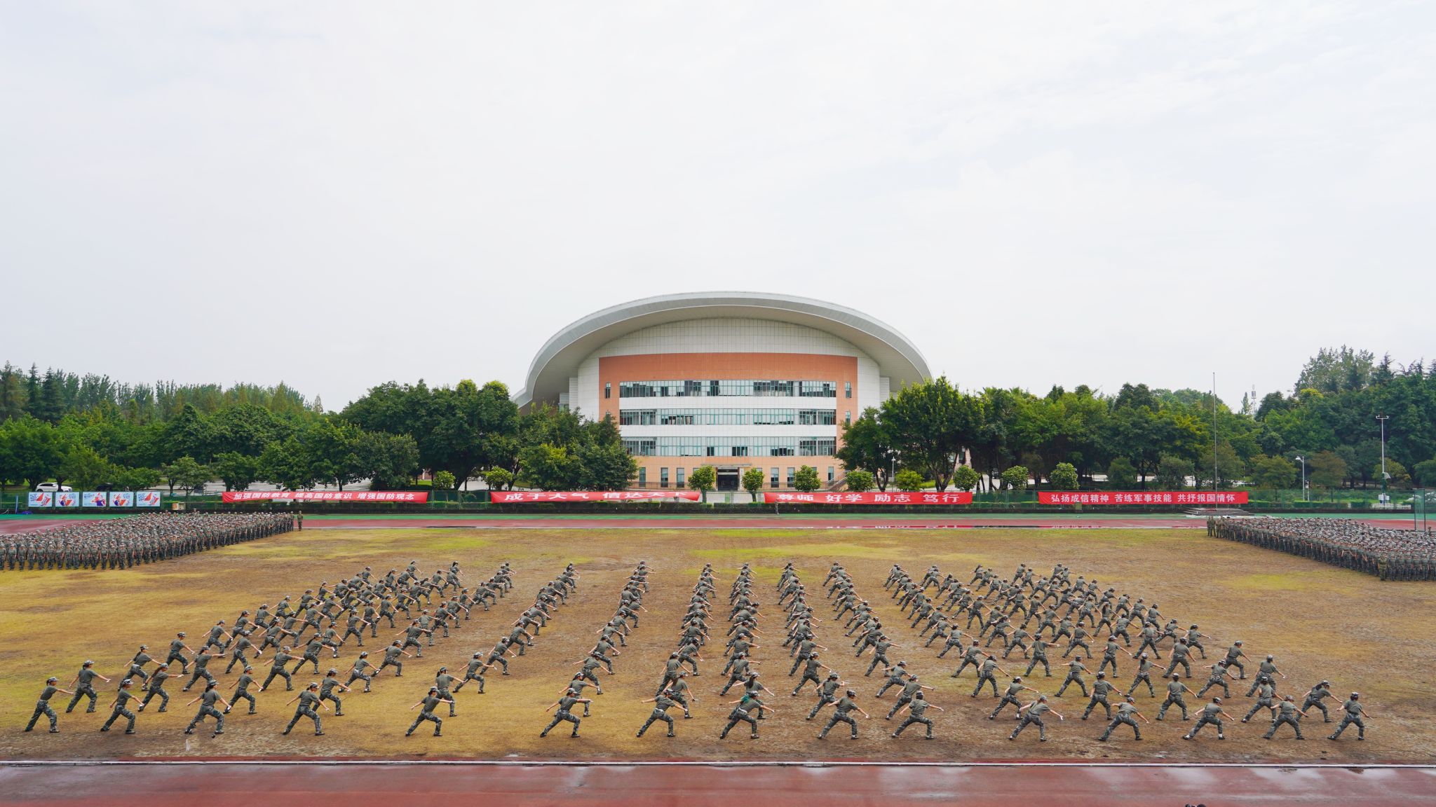 【本网讯】9月14日上午,学校分别在航空港校区和龙泉校区举行了2024级本科生军训总结大会。学校党委常委、副校长陈权亮,党委常委、党委组织部、党委统战部部长熊建,党委宣传部、党委学生工作部、党委武装部、教务处、后勤基建处、校团委负责人,各学院党委书记、副书记、学生科科长、副科长,军训教官,2024级本科学生和辅导员等参加了大会。党委学生工作部部长龚晓林、副部长陈敏分别在航空港校区与龙泉校区主持大会。