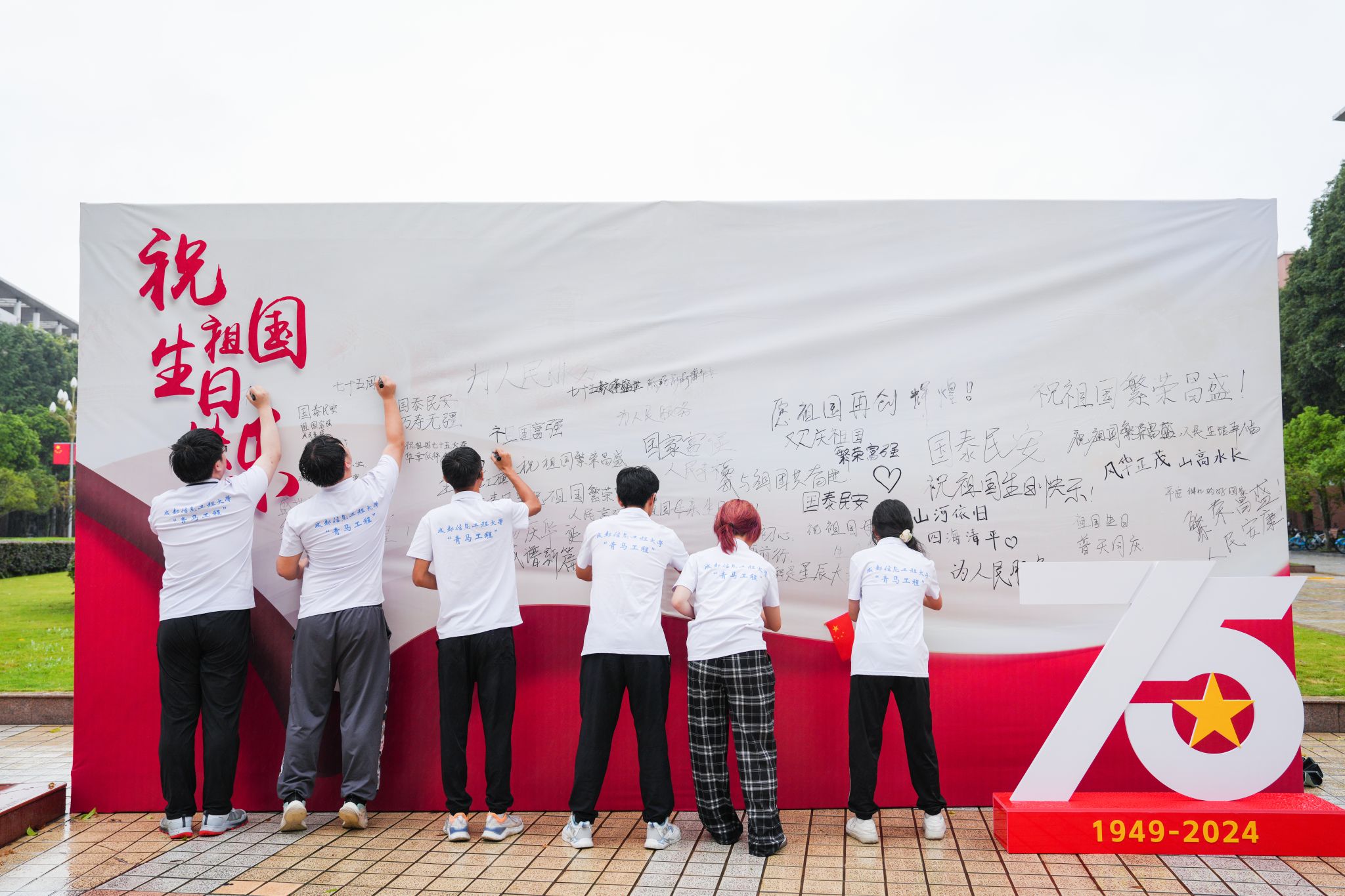 大气科学学院苏露、管理学院雷媛代表全体教师发言,礼赞新中国75年来的伟大成就。她们表示,作为一线工作的青年教师,深知教育对于国家和民族的重要性,未来要以先辈们为榜样,用自己的言行,传递正能量,激发青年学生的奋斗精神,引导他们勇敢追梦,不懈奋斗。软件工程学院2022级吴浩然、管理学院2021级王智弘作为学生代表发言。他们深情告白伟大祖国,表达了树立远大理想的决心和听党话、感党恩、跟党走的坚定信念,未来要胸怀强国之志,锤炼强国之技,融入强国之功,将以昂扬向上、不懈奋斗的姿态接过强国建设、民族复兴的历史接力棒,砥砺推进中国式现代化建设。