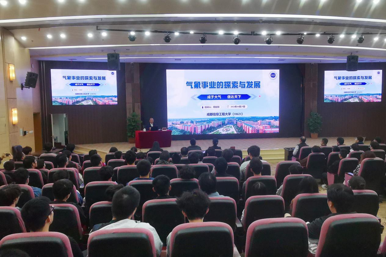 何建新聚焦“气象事业的探索与发展”主题,从我国气象事业的时代使命、气象事业发展的历史轨迹、气象科技工作者的气象精神、学校在大气科学和信息技术等领域的成就与贡献、新时代大学生的责任担当五个方面,为学生们作了深入浅出的阐释。