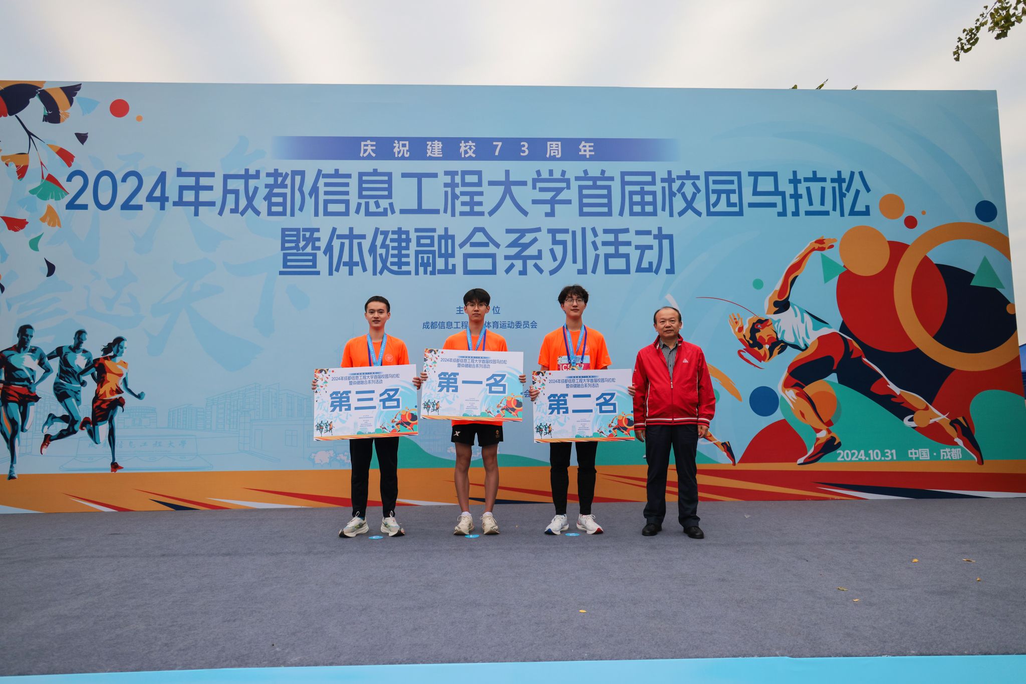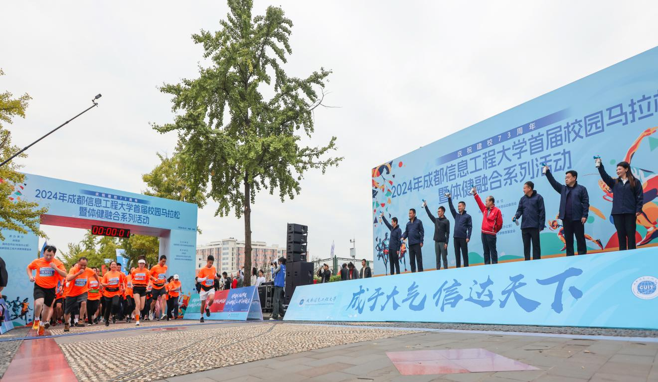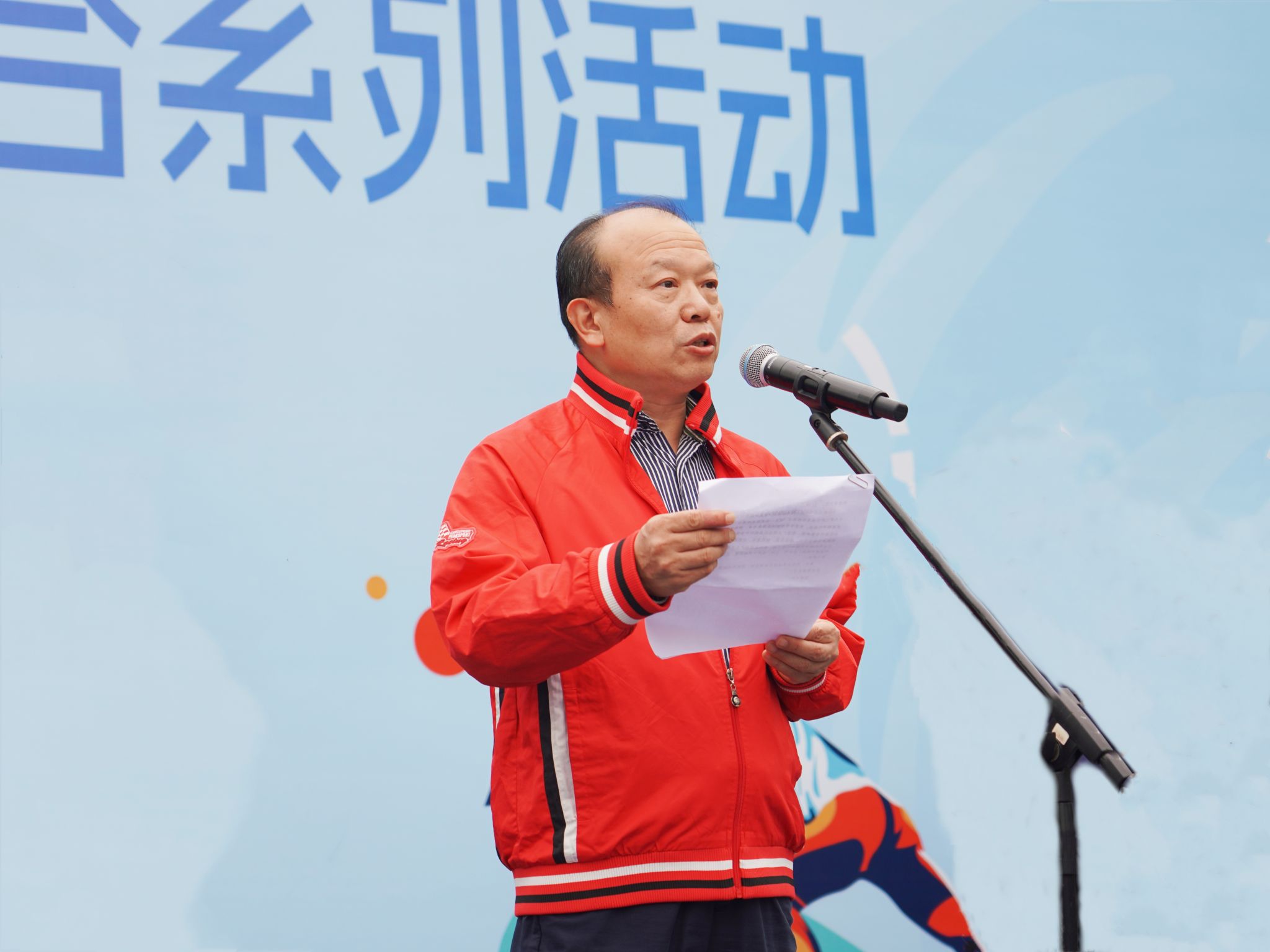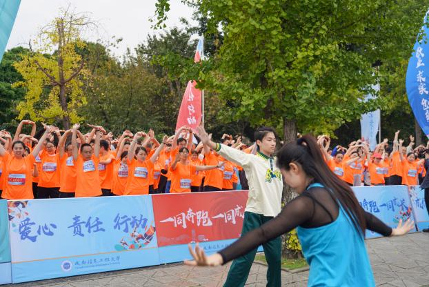 学校校长何建新、副校长陈权亮,体育部党委书记、主任程艺,国内合作处、校友办公室主任张斌兵,学生工作部部长龚晓林,校工会委员会专职副主席周波,校团委书记刘琰琰,学校杰出校友、赛事宣传官碾者阿提参加起跑仪式,为比赛鸣笛。