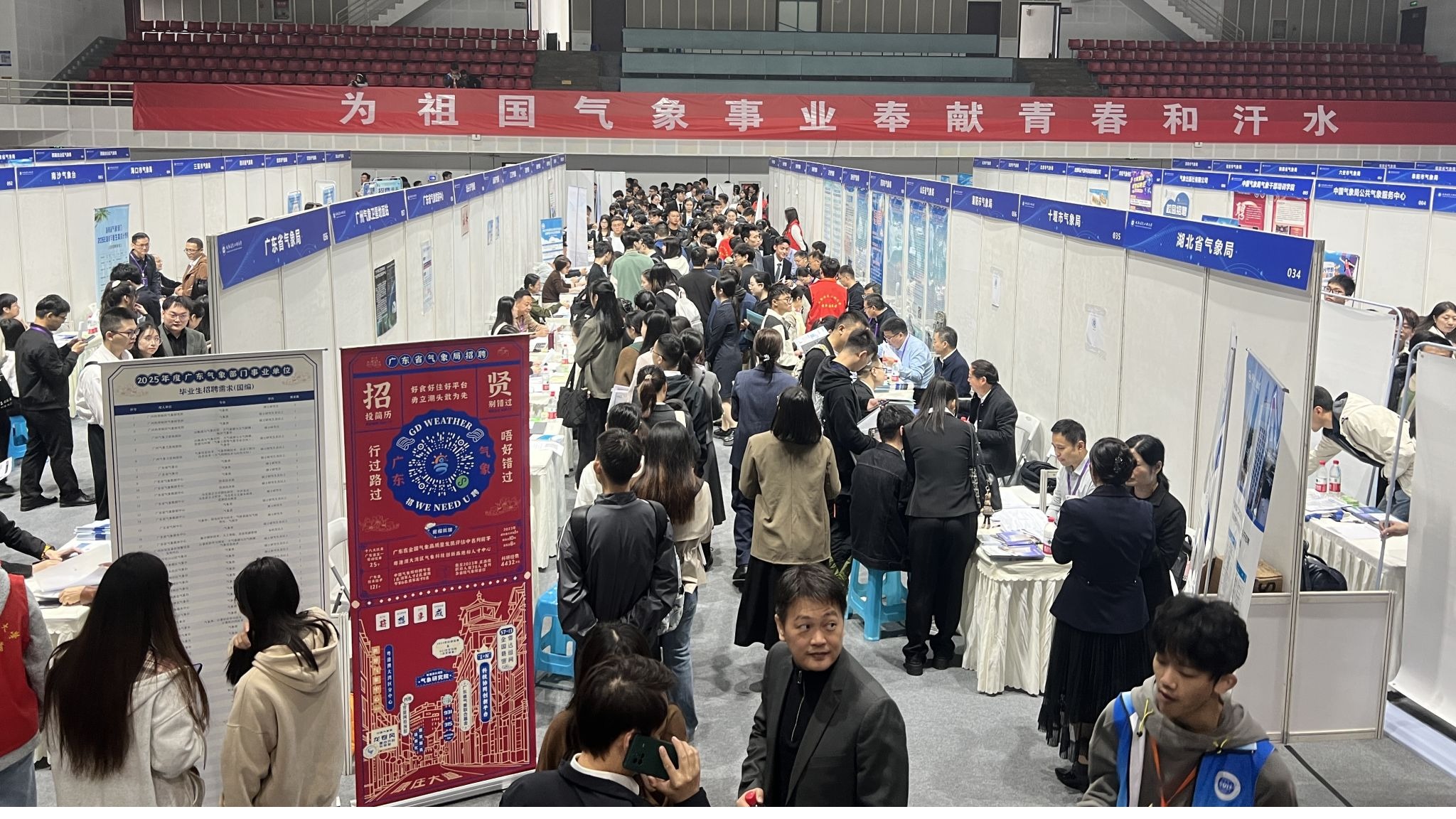 【本网讯】11月9日,全国气象部门2025年度人才招聘会在伟德官网航空港校区体育馆举办。中国气象局在京单位和各省(自治区、直辖市)气象部门共170余家单位,提供超过2300个事业编制岗位,招聘专业以大气科学类为主,涵盖遥感应用类、地球科学类、环境科学类、计算机类、电子信息类、数理类、财会类等十几个学科领域,为气象行业用人单位和毕业生建立了“双向奔赴”契合点,为气象事业的高质量发展提供人才源动力。