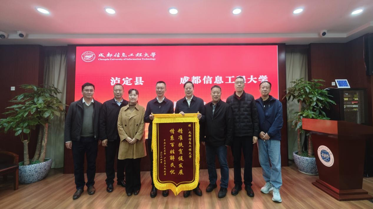 沈火明代表学校对宋晓军一行的到来表示热烈欢迎,并介绍了学校的基本情况。他表示,学校将坚决贯彻省委、省政府的决策部署,全力做好定点帮扶工作;发挥学校人才优势,为泸定县“十五五”规划提供智力支持;进一步加强沟通,持续加大文化教育方面的帮扶力度,帮助泸定县打造社会治理共同体,推进基层治理现代化;继续做好“以购代捐”消费帮扶,为推进泸定乡村振兴贡献成信大的智慧与力量。