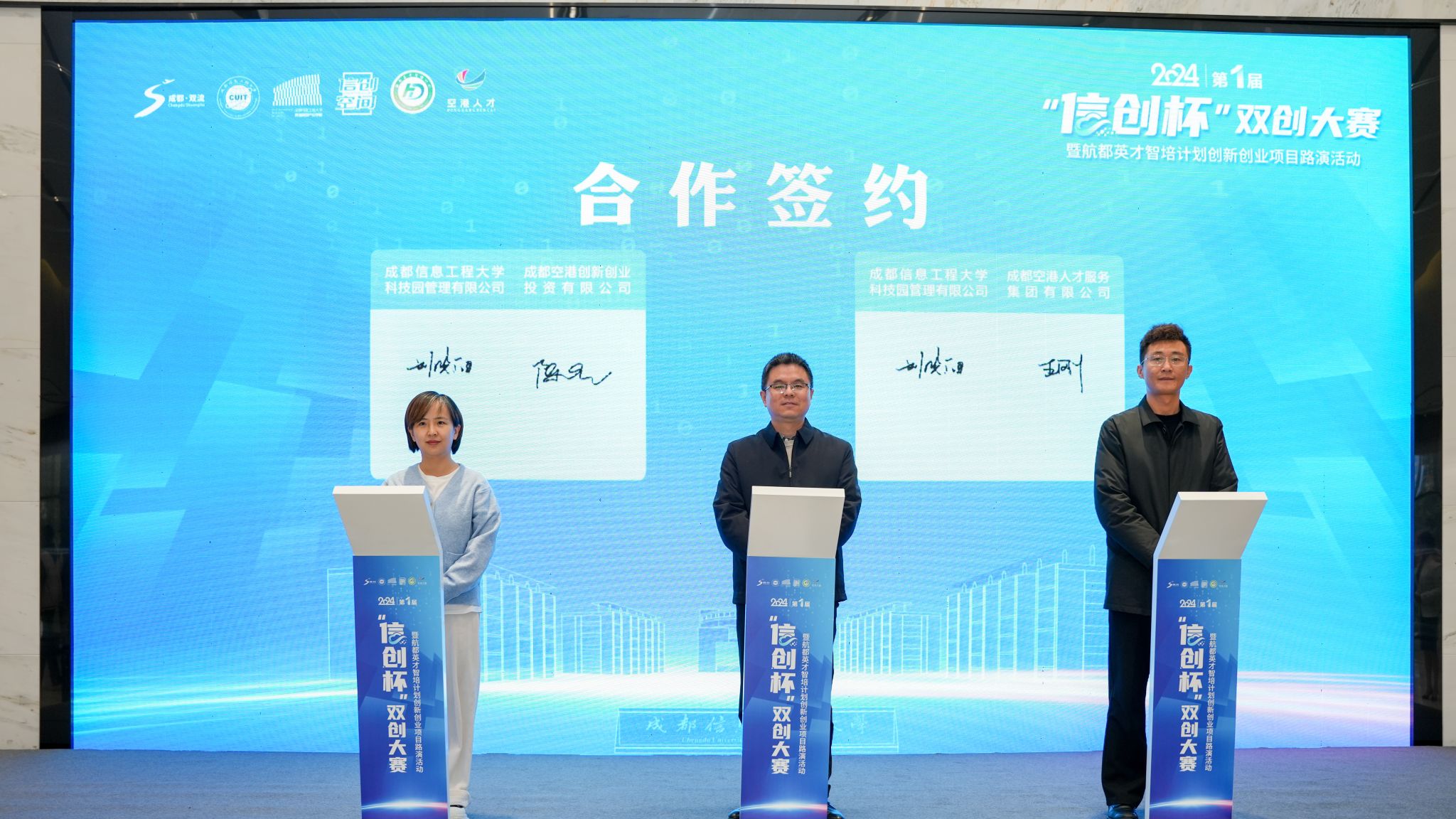 bv伟德国际1946科技园管理有限公司与成都空港创新创业投资有限公司、成都空港人才服务集团有限公司围绕项目孵化、技术问诊、投融资对接等方面内容进行合作签约。