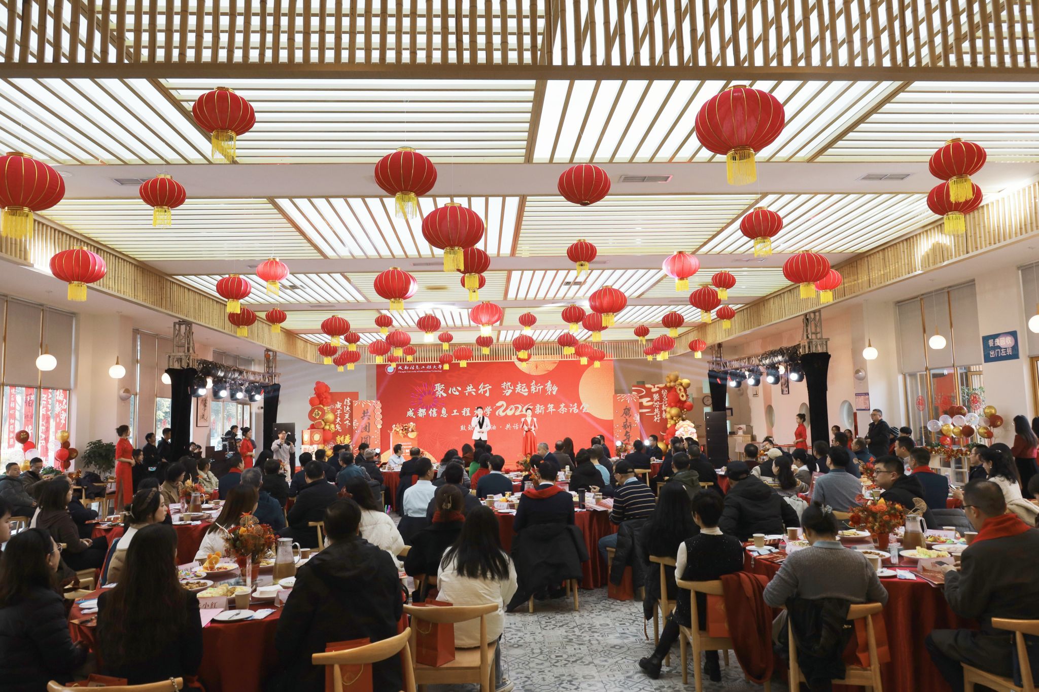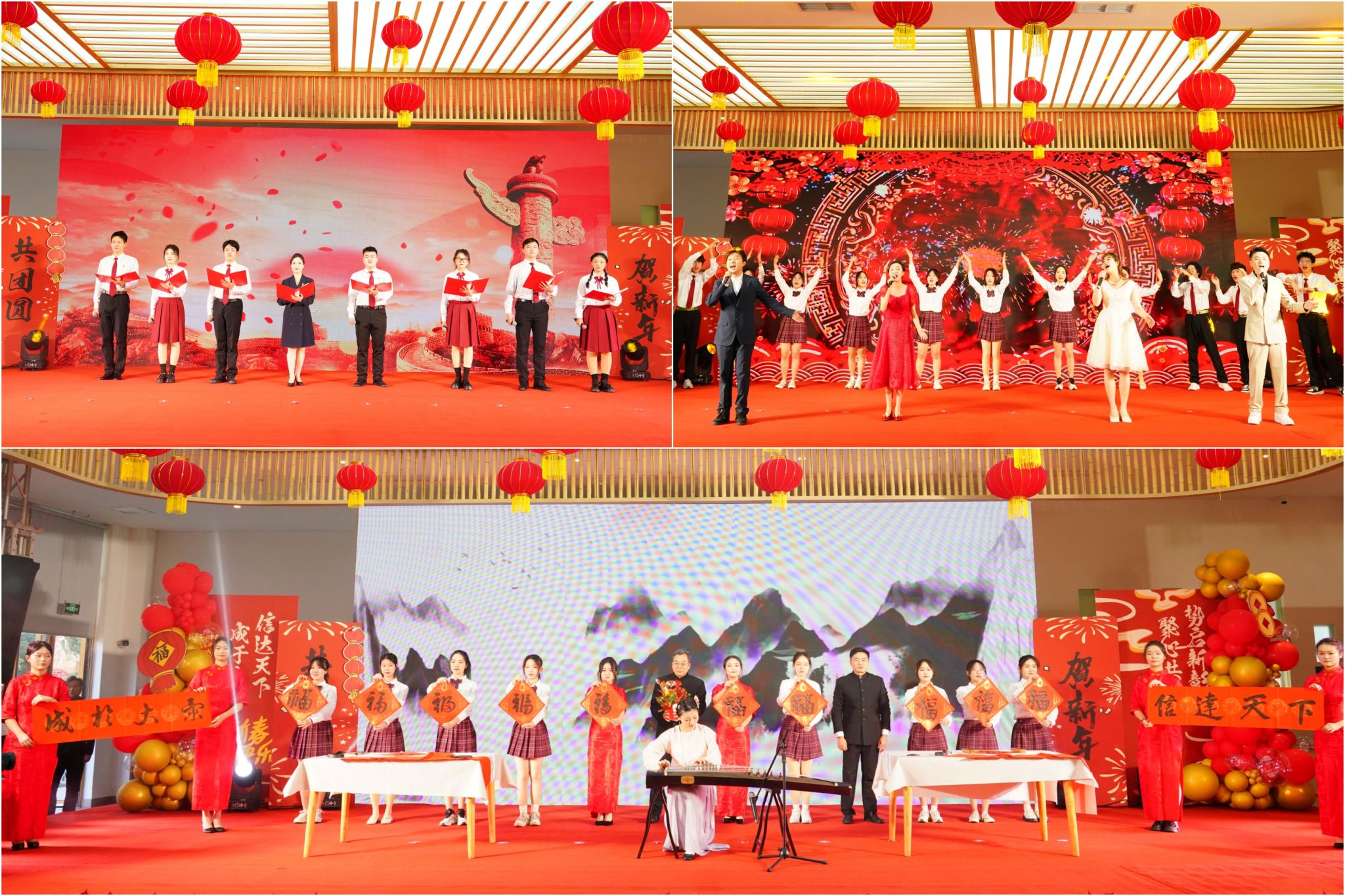 茶话迎新年,成信年味浓。合唱《祝你生日快乐》《声声慢》、配乐诗朗诵《党旗飘扬山河同光》、古典舞《清平乐》《雨后》、琴艺和书法展示《琴书合鸣》、传统体育表演《锦韵竹风》等精彩节目赢得了现场阵阵掌声。一轮轮抽奖更是将节日的喜庆气氛推向了高潮,现场洋溢着欢声笑语,气氛热烈而欢快。