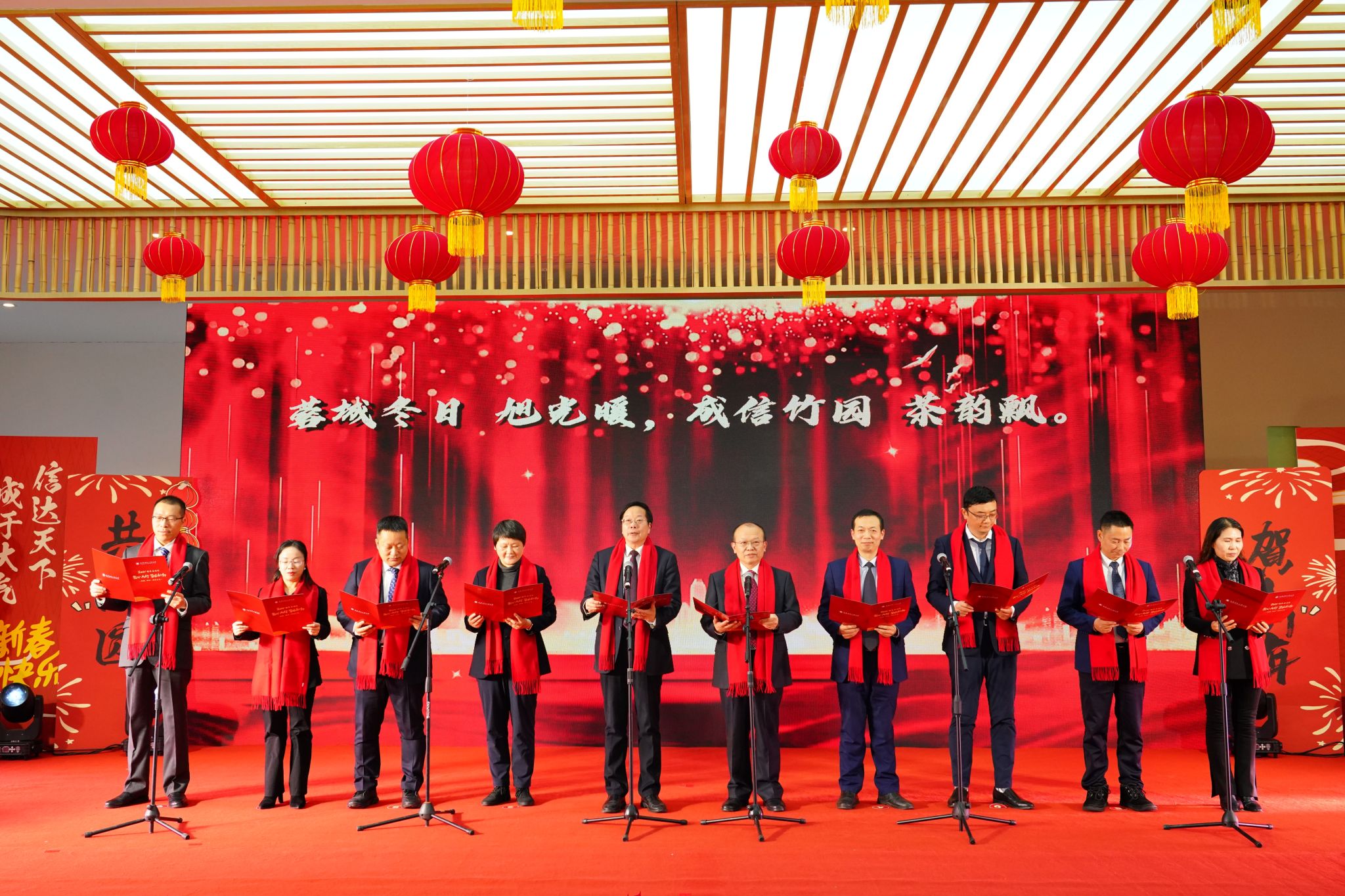 随后,在沈火明、何建新带领下,党委领导班子成员以饱满的热情和深情的语调,朗诵了这首特别为元旦定制的七言诗《2025元旦成信颂》。诗歌中不仅回顾了学校在过去一年中取得的成就,也表达了对未来一年学校发展的期待和信心。