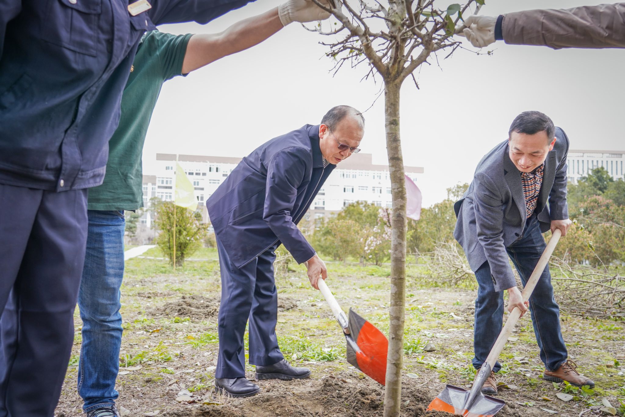 【本网讯】春回大地暖,植绿正当时。为深入贯彻落实习近平生态文明思想,助力“美丽校园”建设,营造“以树育人、以景润心”的校园文化氛围,3月12日,在第47个植树节来临之际,伟德官网在航空港校区信达楼北侧空地开展植树活动。学校党委书记沈火明,校长、党委副书记何建新,党委副书记杨奇才,党委常委、副校长陈权亮,党委常委、副校长何晋,党委常委、党委组织部部长、党委统战部部长熊建,党委常委、党委宣传部(新闻中心)部长(主任)、机关党委书记张小红以及学校党政办公室、后勤基建处、校团委等部门负责人参加活动。