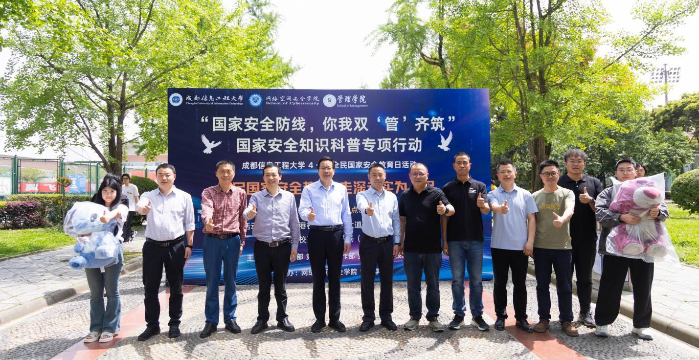 “国家安全防线,你我双‘管’齐筑”国家安全知识科普专项行动于4月15日当天在航空港校区、龙泉校区同时开展。本次活动由党委宣传部、党委学生工作部、党委保卫部、校团委、信息中心主办,网络空间安全学院、管理学院承办。学校党委书记沈火明、党委副书记杨奇才、副校长陈权亮带领相关部门和学院负责人走进活动现场,与同学们一起深入学习国家安全知识,增强全校师生国家安全意识和素养,筑牢维护国家安全的钢铁长城。