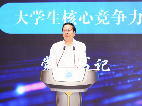 在“智学无界·主旨分享”环节,沈火明以《AI2.0时代的大学生核心竞争力建构》为题,从AI2.0时代的范式革命与教育应答、新时代的大学生应具备的核心竞争力、学校在助力学生核心竞争力建构方面的举措三个维度,深入剖析新时代技术变革与教育发展的内在逻辑,精准锚定大学生核心竞争力培养方向。他指出,在人工智能重塑产业格局、改写人才标准的新时代,青年学子应肩负推动社会进步和科技创新的使命,培养技术素养与人文温度,在技术浪潮中锚定发展方向,成长为堪当民族复兴重任的时代新人。