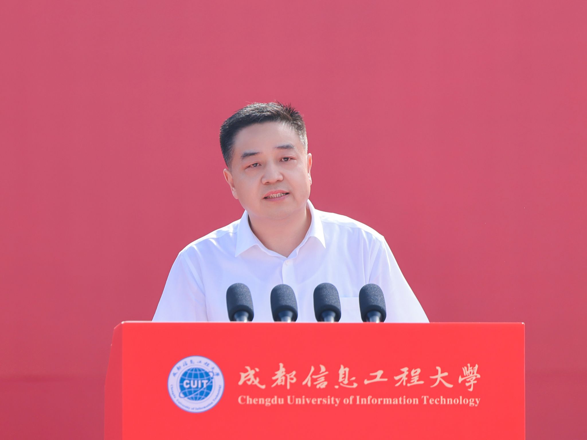 何建新以“定力为锚,自信作帆 在笃行不怠中书写成信人的不凡答卷”为题发表讲话。他表示,2025届毕业生回望在校时光,是祖国发展的见证者,更是母校进步的亲历者。学校的每一次跨越,都深深铭刻着师生同心、携手共进的印记。在这段共同奋进的岁月里,同学们不仅收获了宝贵的人生历练,更一次次突破自我,取得了值得骄傲的成绩。