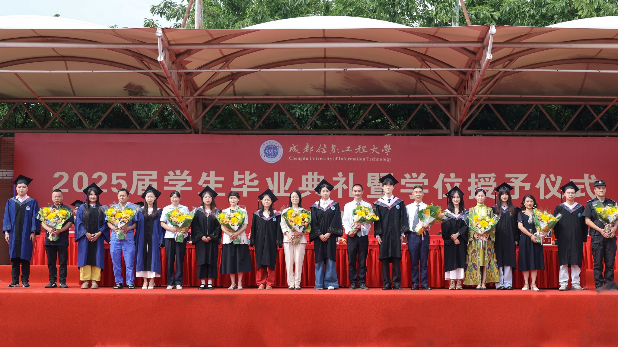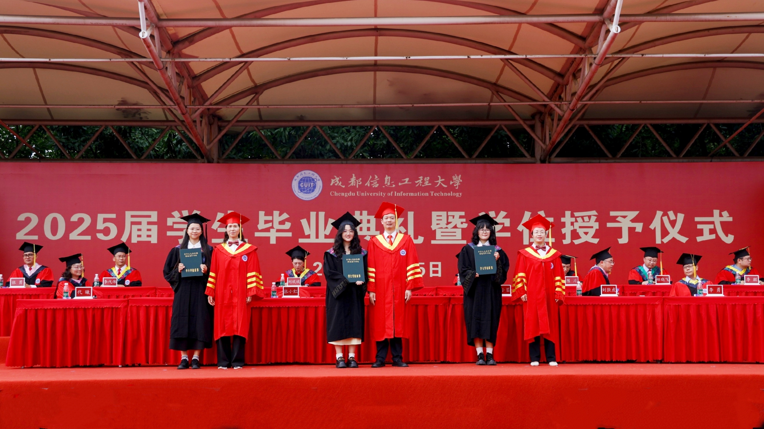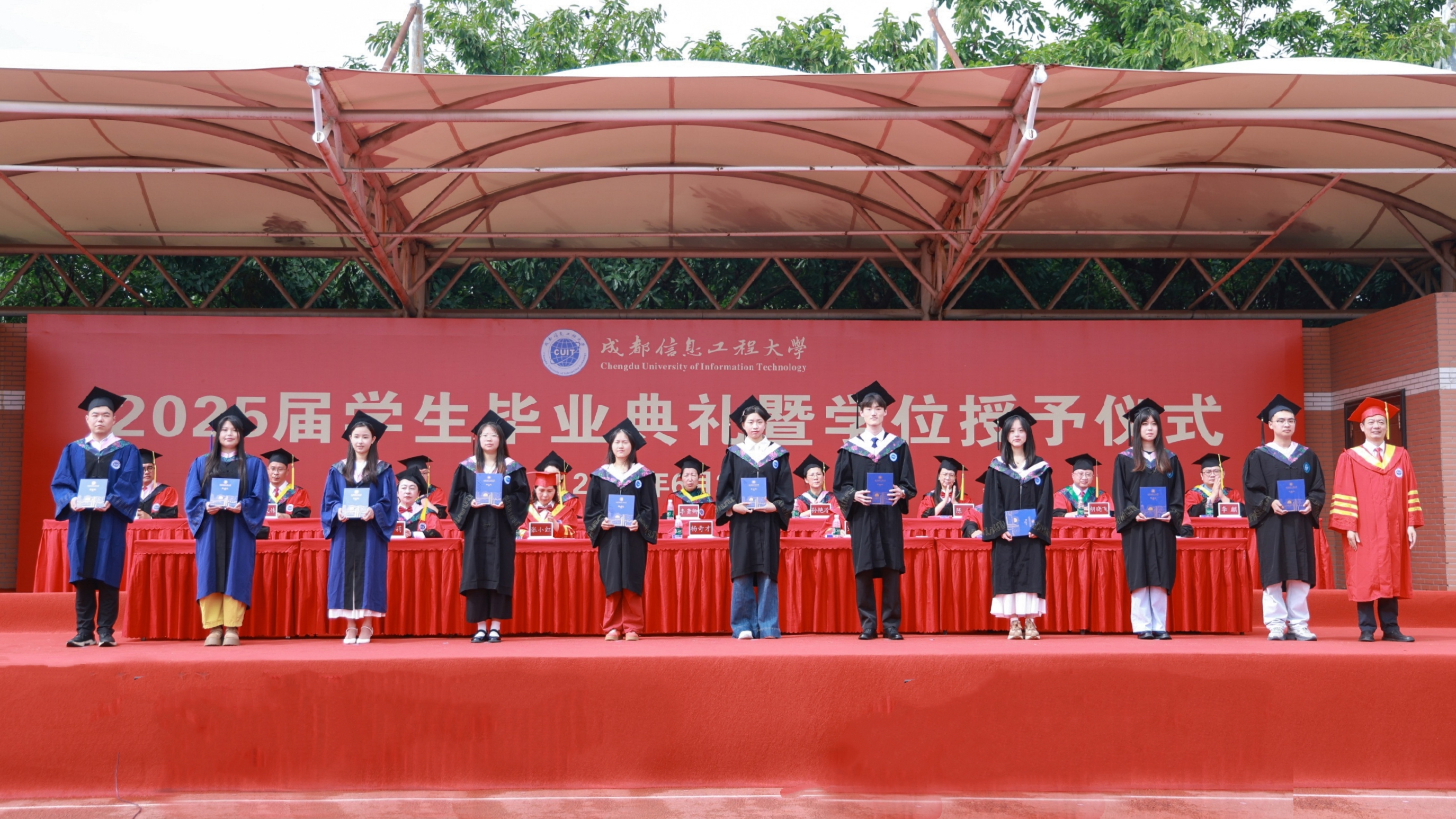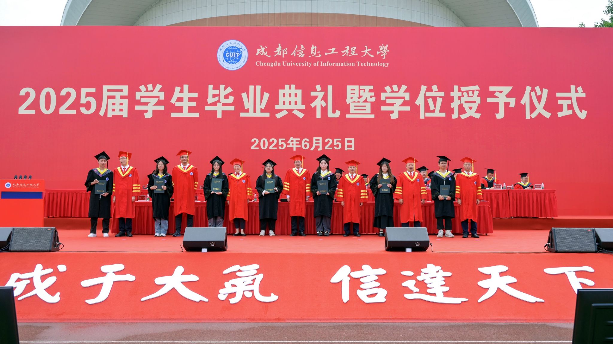 学校领导和教师代表依次为2025届四川省优秀研究生毕业生、校级优秀研究生毕业生、四川省优秀本科生毕业生、校级优秀本科生毕业生授位、颁证。