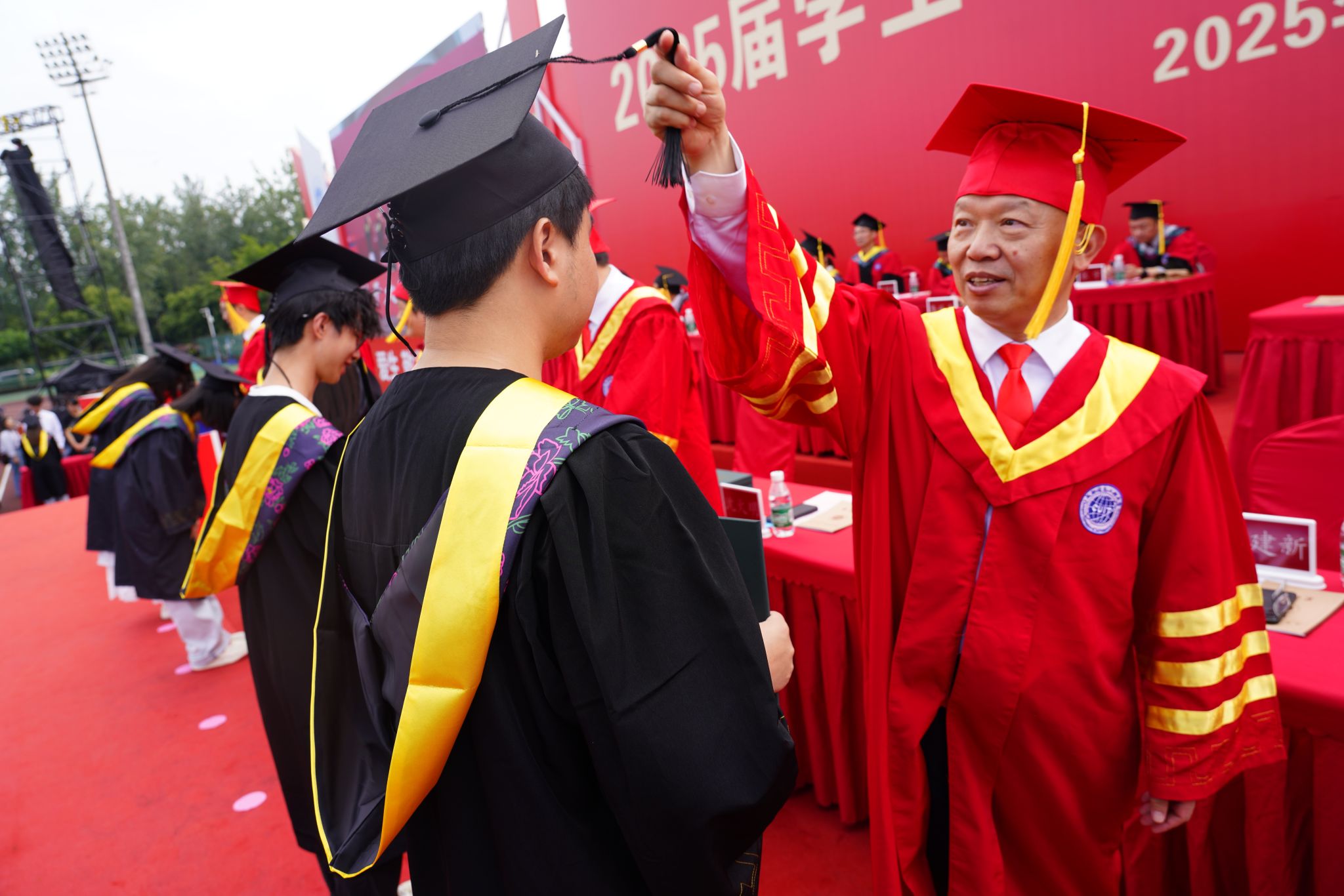 【本网讯】6月25日上午,学校2025届学生毕业典礼暨学位授予仪式在航空港校区第二田径场、龙泉校区田径场隆重举行,并通过网络平台在线直播。学校党委书记沈火明,党委副书记、校长何建新,省纪委监委驻校纪检监察组组长、党委副书记、纪委书记王琪,党委副书记杨奇才,党委常委、副校长舒红平、吴锡、罗小蓉、陈权亮、何晋,党委常委、党委组织部、党委统战部部长熊建,党委常委、党委宣传部部长、机关党委书记张小红,学校学位评定委员会成员,二、三级教授,相关职能部门负责人,各学院负责人、毕业班辅导员,毕业生家长代表,以及2025届毕业生代表齐聚一堂,共同见证毕业生开启人生新篇章的闪耀时刻。陈权亮主持毕业典礼。