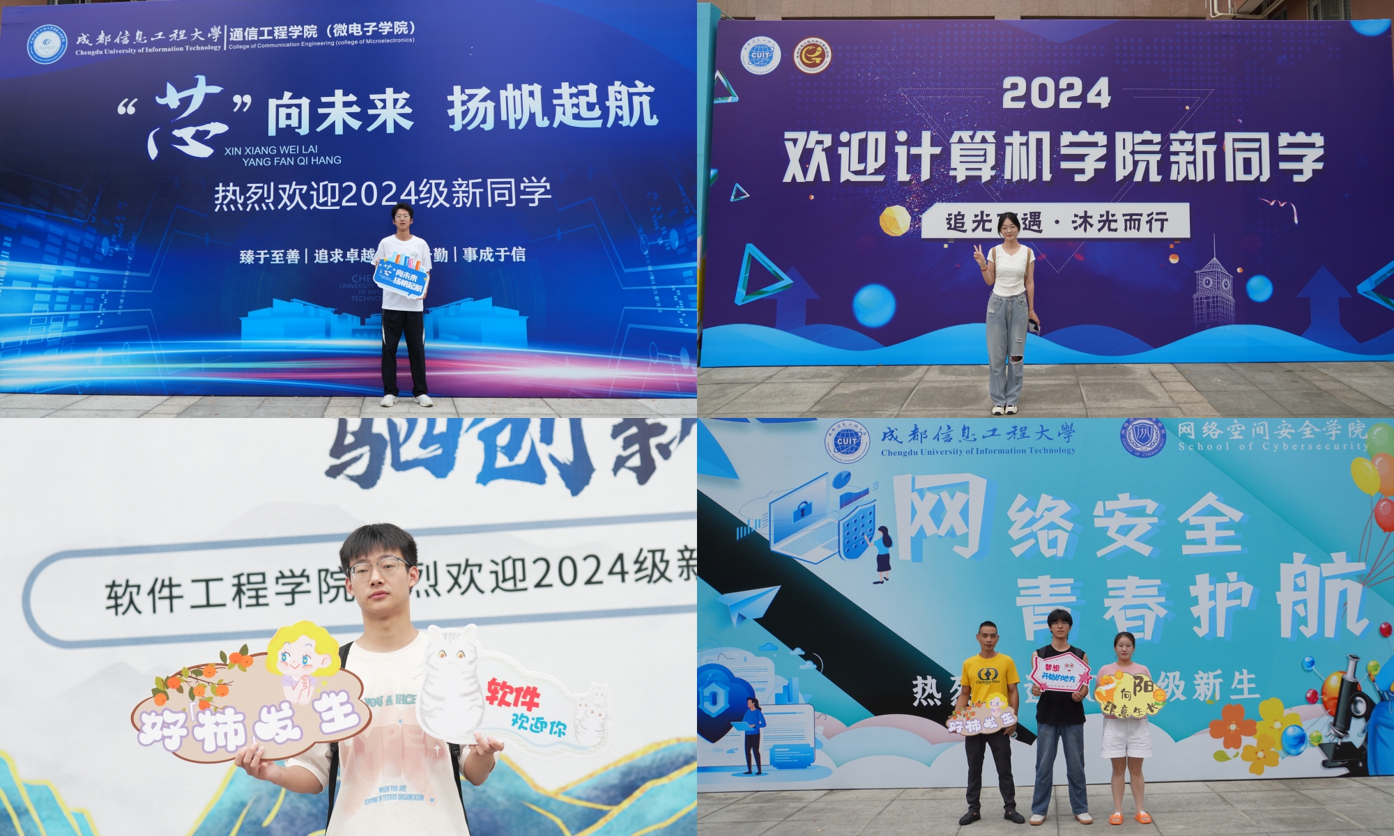 【本网讯】秋风送爽喜迎新,莘莘学子启征程。8月31日,学校盛情迎接来自五湖四海的新成信人,航空港、龙泉和芯谷校区共有2024级本科新生5400余名、研究生1300余名入学报到,开启崭新的知识殿堂旅程。