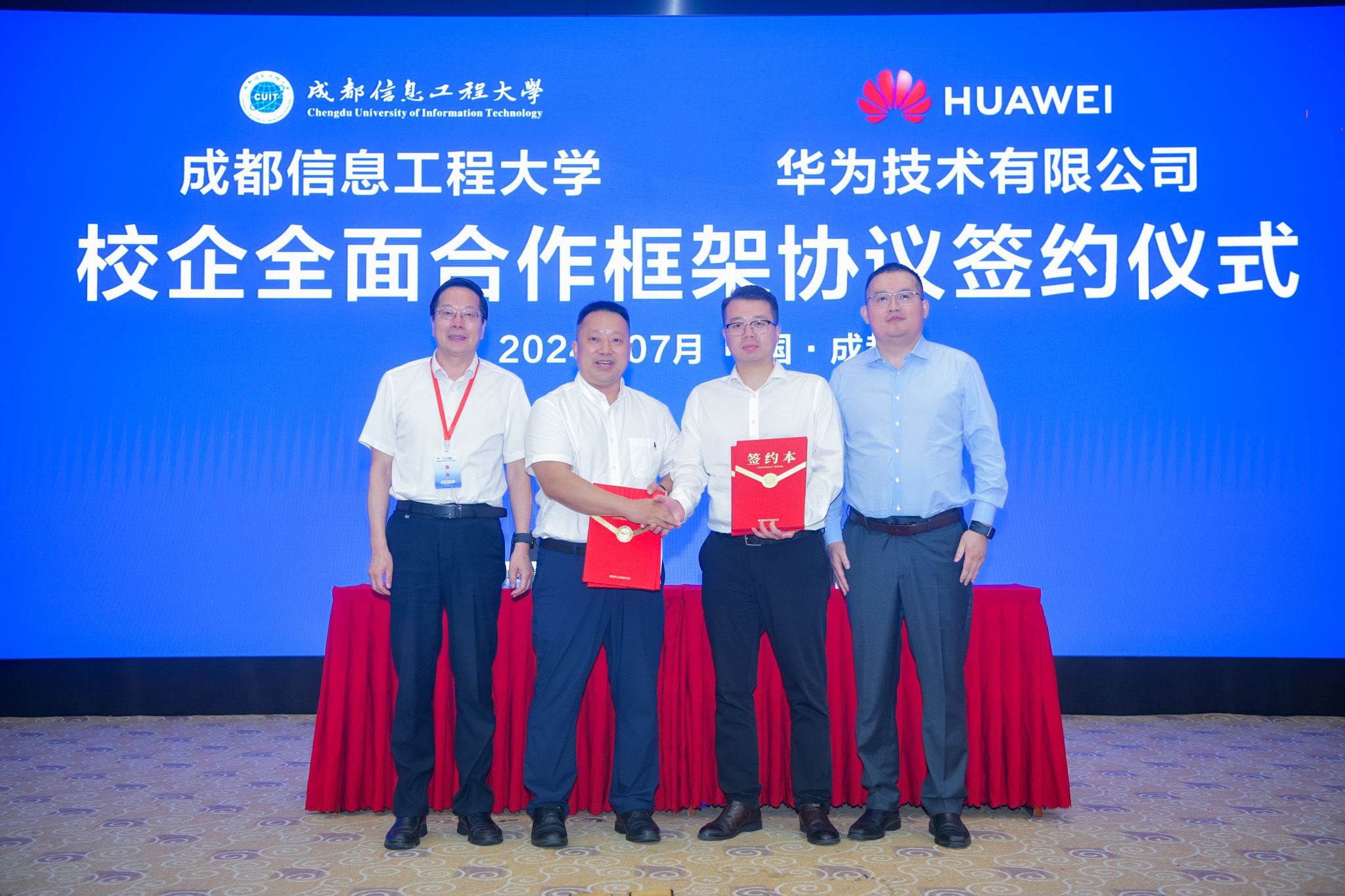 学校副校长舒红平和华为川藏政企教育医疗总经理张志华分别代表双方单位,签署了bv伟德国际1946——华为技术有限公司校企全面合作框架协议。沈火明、赵祎鑫见证了双方开启深度合作、共创辉煌的里程碑时刻。