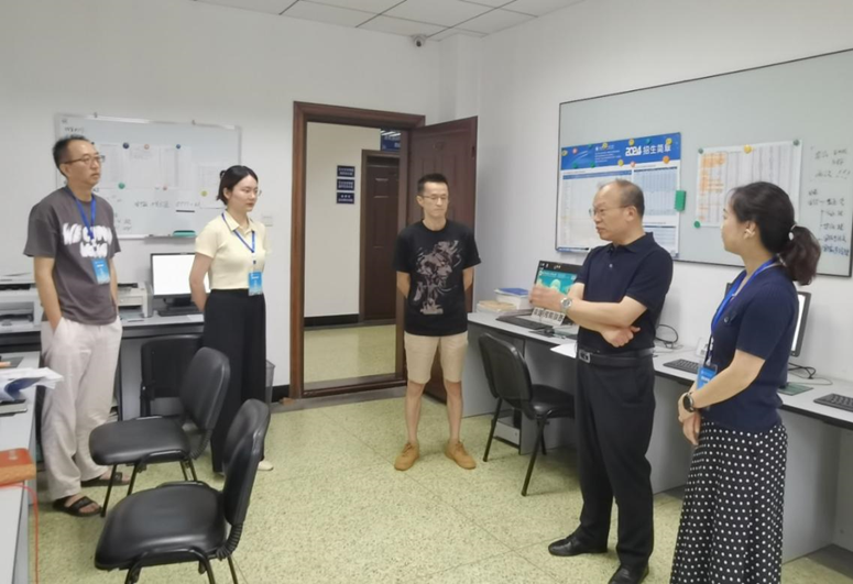 【本网讯】7月17日上午,学校校长何建新到学校本科招生录取现场指导工作,看望慰问招生录取工作人员。