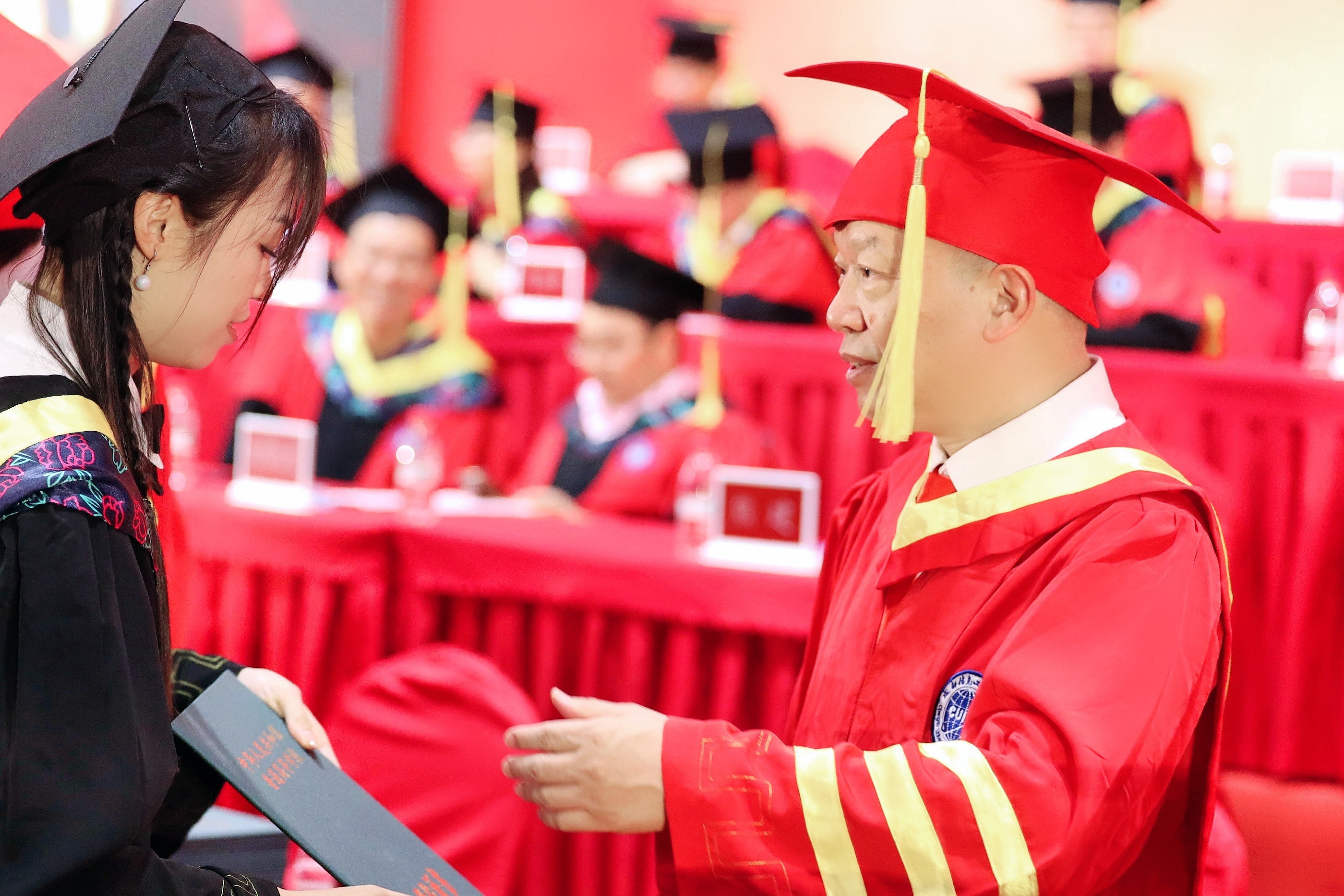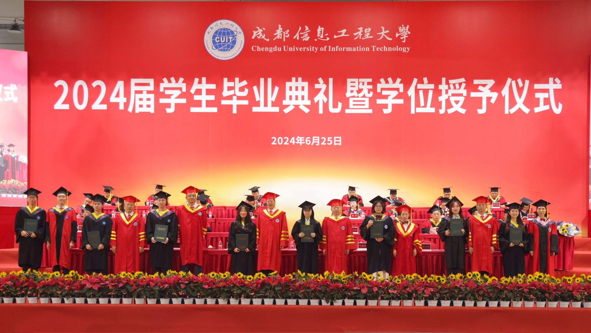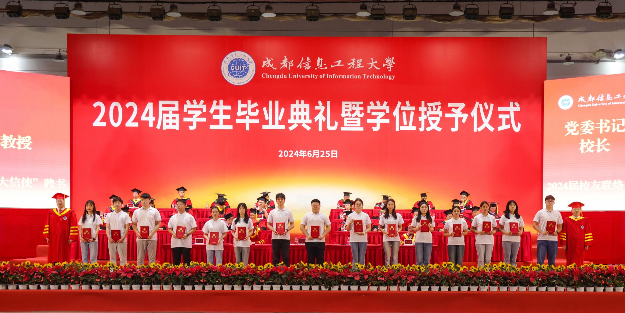 学校领导和教师代表依次为2024届四川省优秀研究生毕业生、校级优秀研究生毕业生、双流新型产业学院研究生毕业生、2024届四川省优秀本科生毕业生、校级优秀本科生毕业生授位、颁证。