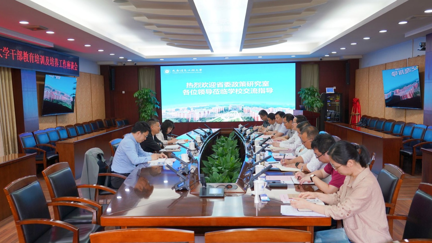 与会人员围绕干部教育培训、干部培养进行了充分讨论。党政办公室、党委组织部、区块链产业学院、继续教育学院相关领导参加了交流座谈。