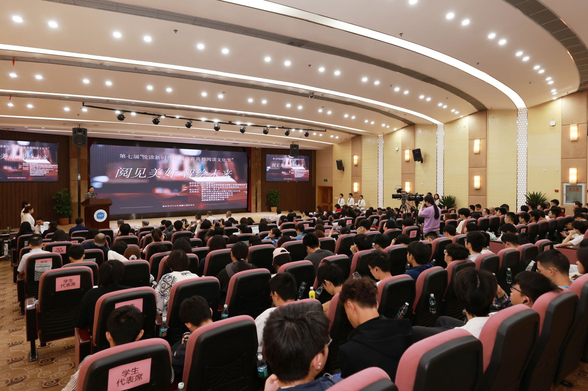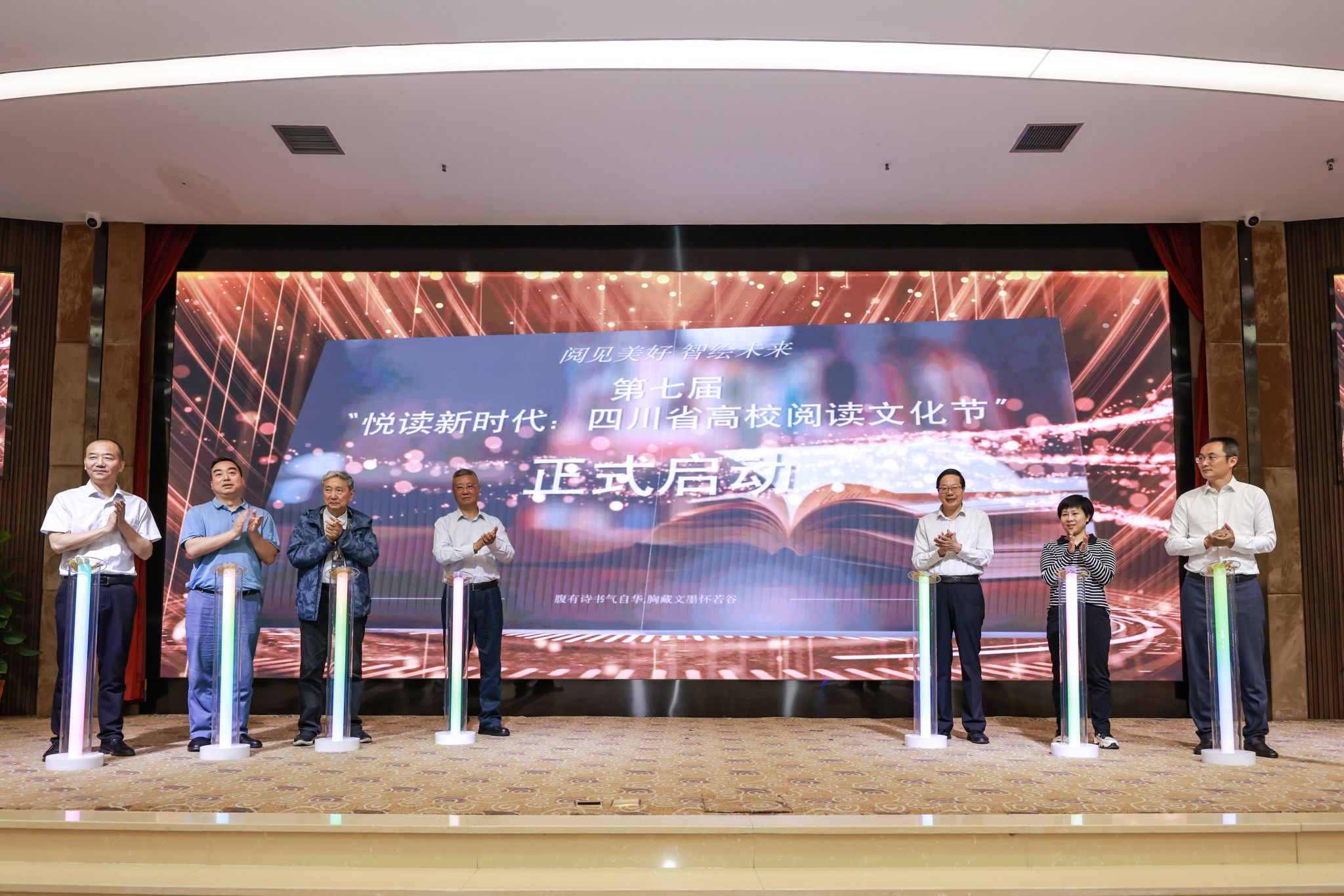 【本网讯】4月19日,为深入学习贯彻党的二十大精神和习近平文化思想,坚持高质量发展理念,以数智技术赋能全民阅读,凝聚高校师生奋进新时代的强大精神力量,为教育强省、文化强省建设不断提供更加充沛的文化滋养,在四川省教育厅的指导下,由四川省普通高等学校图书情报工作指导委员会、四川省图书馆学会高等学校系统委员会主办,bv伟德国际1946承办的“阅见美好 智绘未来”——第七届“悦读新时代:四川省高校阅读文化节”启动仪式在学校航空港校区盛大举行。韬奋基金会理事长刘伯根,四川省图书馆党委书记、馆长王龙,四川省社会科学界联合会科普处调研员张晓泓,四川省图书馆学会秘书长赖柯,四川省高等学校图书情报工作指导委员会主任委员兰利琼,特邀专家谭楷,学校党委书记沈火明、副校长朱明出席了会议。