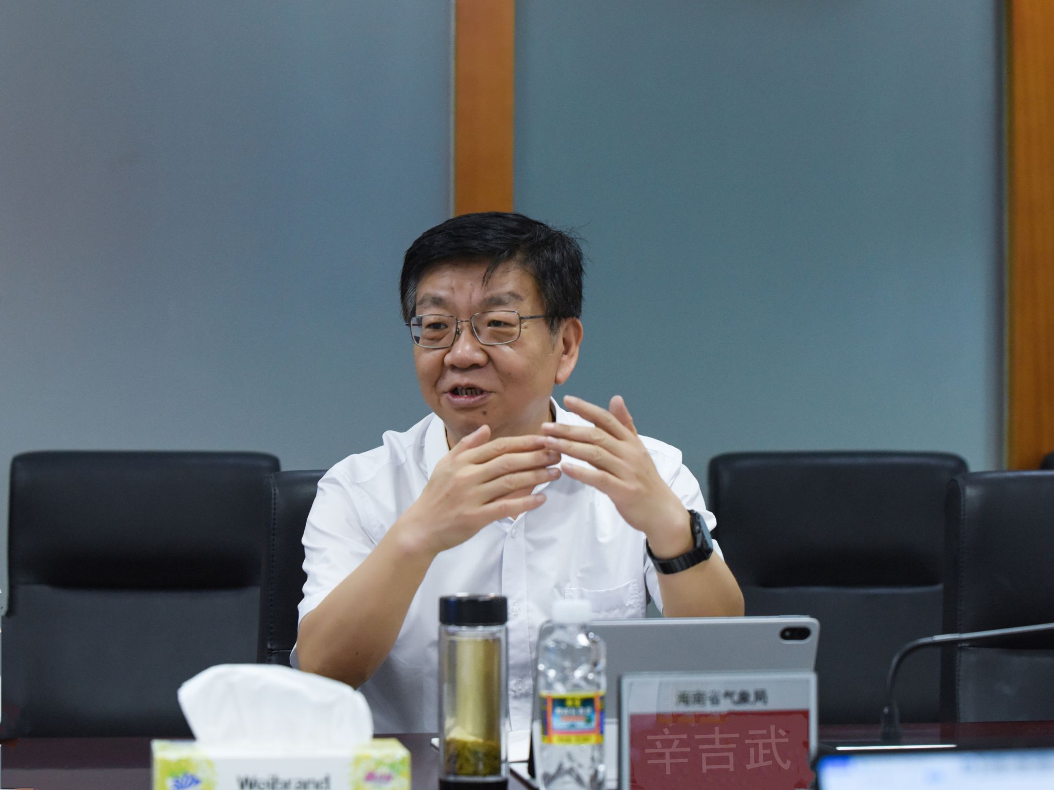 辛吉武对何建新一行表示欢迎,他介绍了海南省气象局的发展历程和现状以及海南省气象局在海洋气象、旅游气象和生态气象方面的工作情况。他希望,双方围绕海南自由贸易港建设的气象业务发展需求,开展技术与人才培养,在气候康养、气象数据等方面开展合作,推进海南省气象建设。
