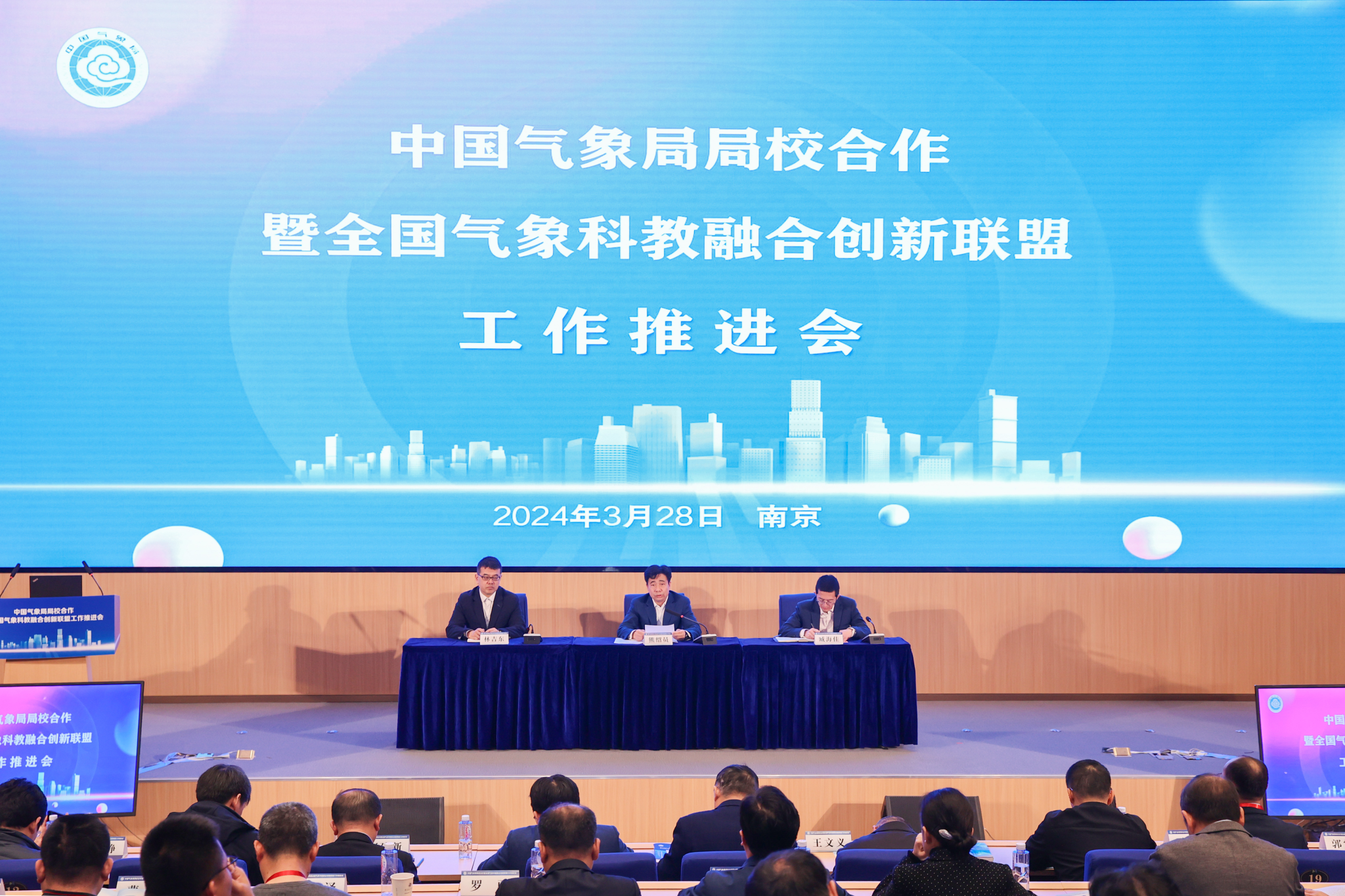 【本网讯】3月28日,中国气象局局校合作暨全国气象科教融合创新联盟(以下简称“联盟”)工作推进会在南京信息工程大学召开。会议深入贯彻党的二十大精神,落实习近平总书记关于气象工作重要指示和关于教育、科技、人才工作的重要论述精神,交流局校合作工作进展,部署推进下一步工作。中国气象局党组成员、副局长熊绍员,全国气象科教融合创新联盟成员单位领导和相关负责人、中国气象局有关内设机构、直属单位负责人、各省(自治区、直辖市)气象局负责人出席此次会议。伟德官网校长何建新出席会议并代表学校作局校合作工作交流主题发言。