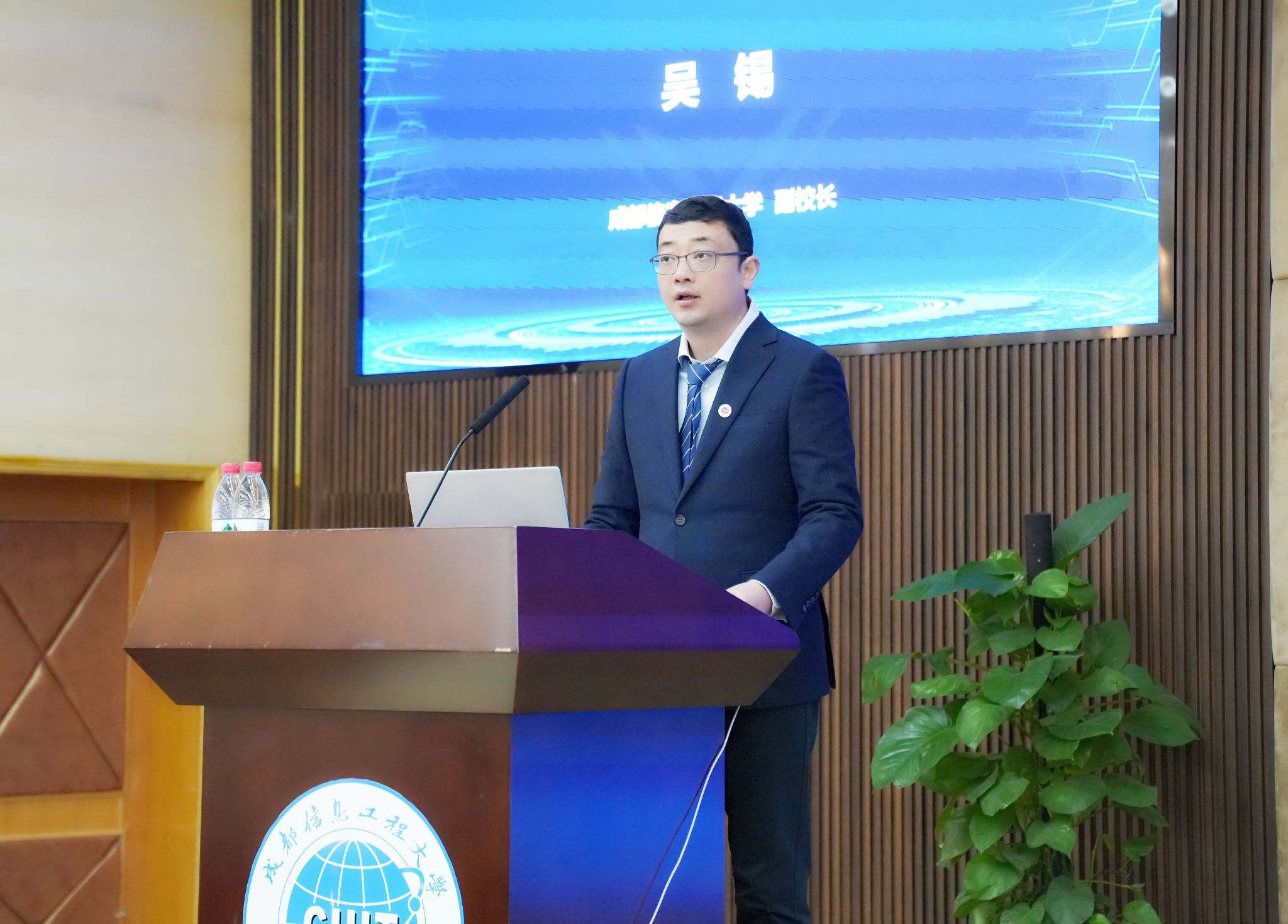 吴锡代表学校在致辞中提到,应推动数字技术全方位赋能高等教育事业发展,加快推进教育数字化转型和智能化升级,本次会议的召开一定能促进我省高校公共基础课程的数字化建设与发展。