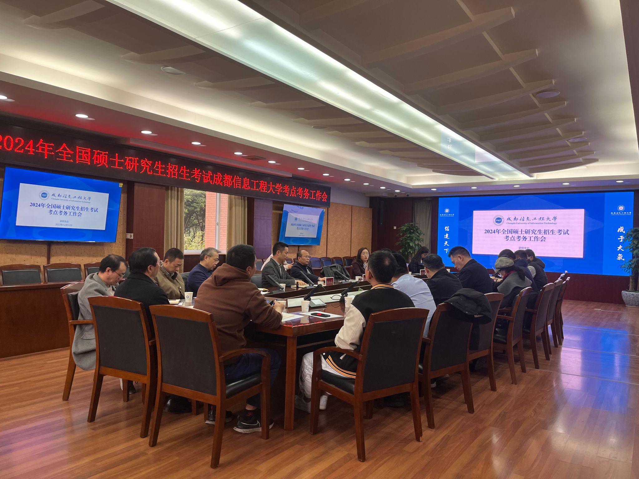 陈权亮传达学习了教育部、四川省关于做好2024年硕士研究生招生入学统一考试工作的各级会议精神,通报了学校按照教育部“三无”“三稳”“三确保”工作要求前期各项准备工作情况,详细部署了下一阶段考点工作小组各成员单位的具体职责和工作要求。