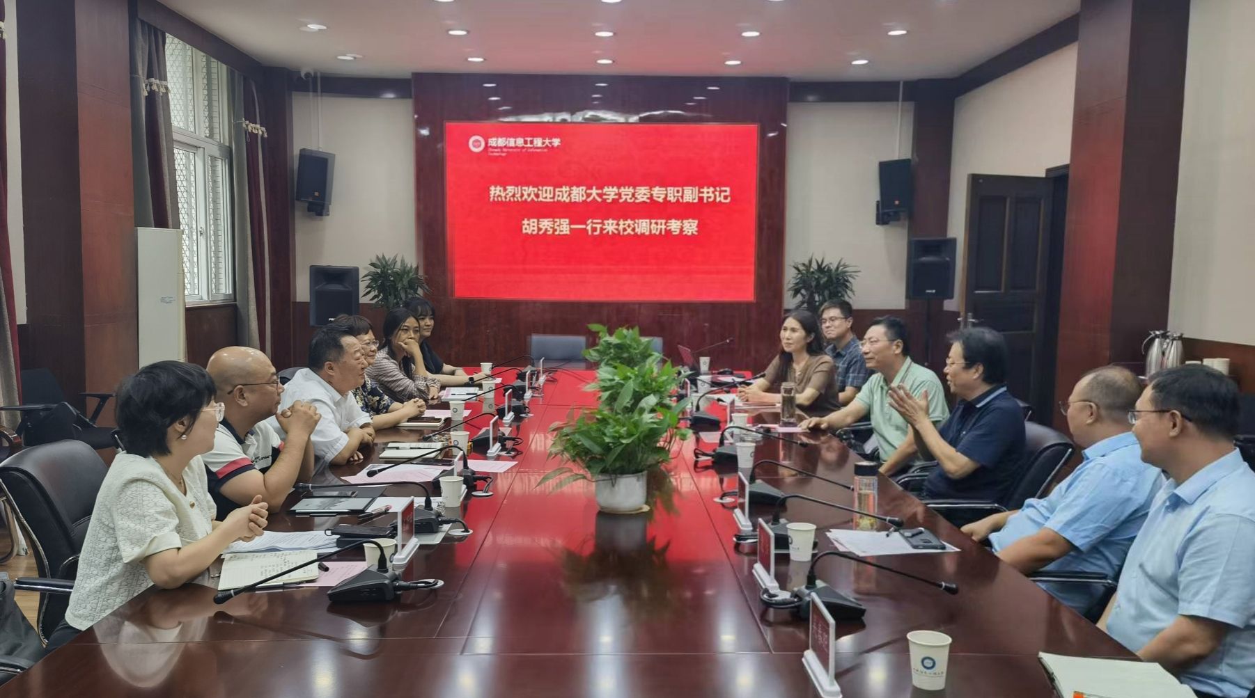 【本网讯】9月14日下午,成都大学党委专职副书记胡秀强一行到伟德官网四川省网信人才培养基地考察调研。伟德官网党委书记周激流、副书记马洪江出席会议。会议由学校党委常委、宣传部部长张小红主持。