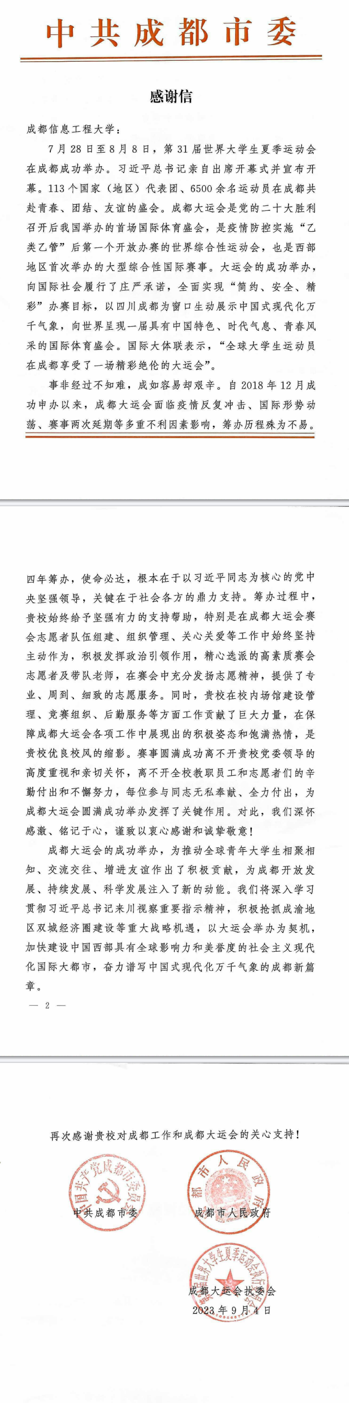 来源:中共成都市委 作者:党委办公室 校长办公室日期:2023-09-08 审核:新闻中心 点击: