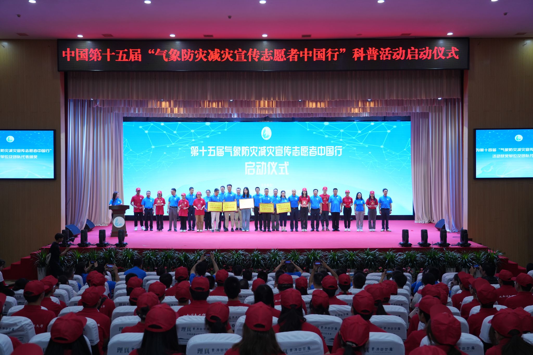与会领导共同启动了第十五届“气象防灾减灾宣传志愿者中国行”活动。