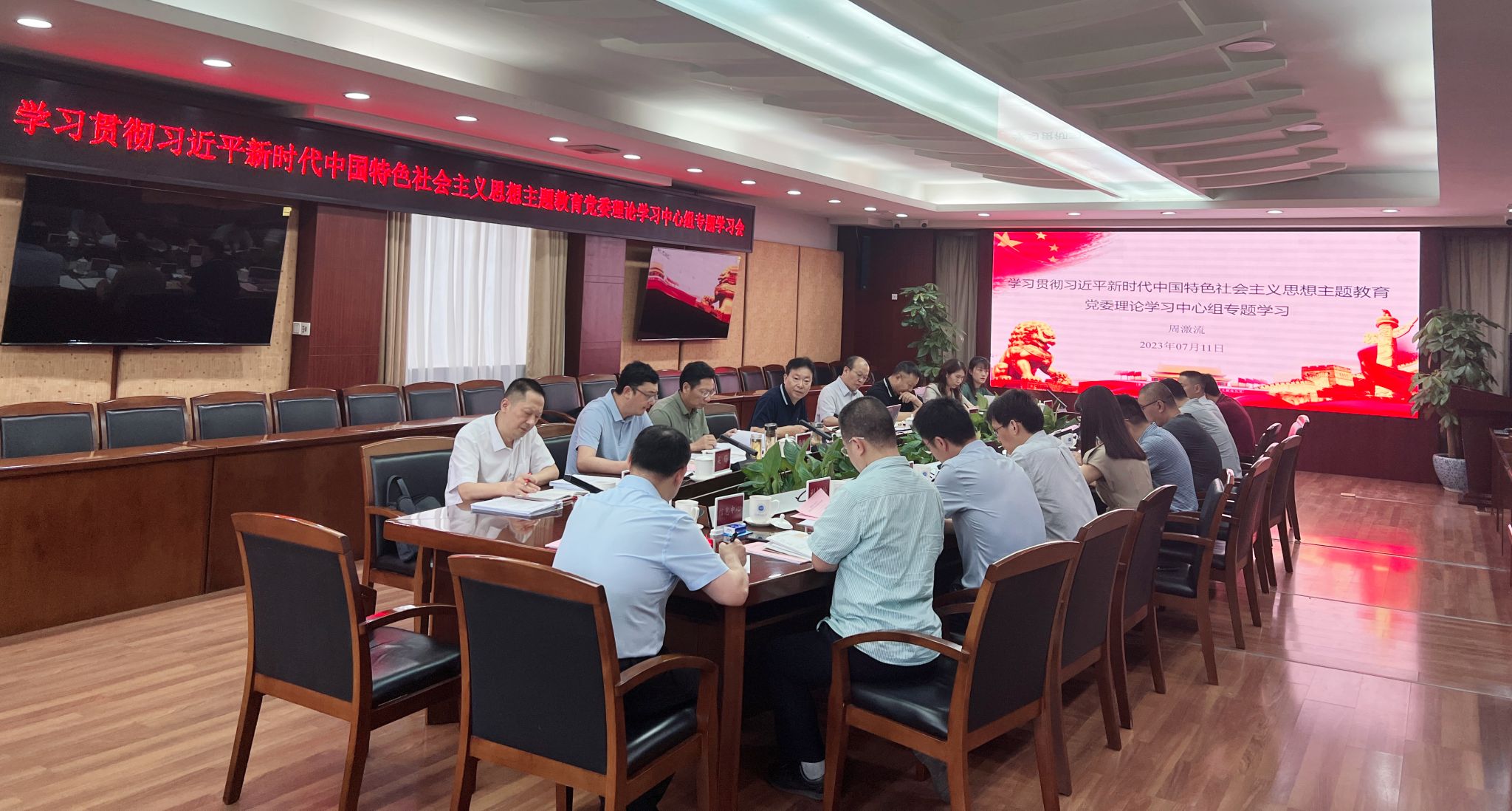 周激流传达了7月10日在成都召开的“全省学习贯彻习近平新时代中国特色社会主义思想主题教育重点工作推进会”会议精神,领学了“中国式现代化的中国特色、本质要求和重大原则”的相关内容。
