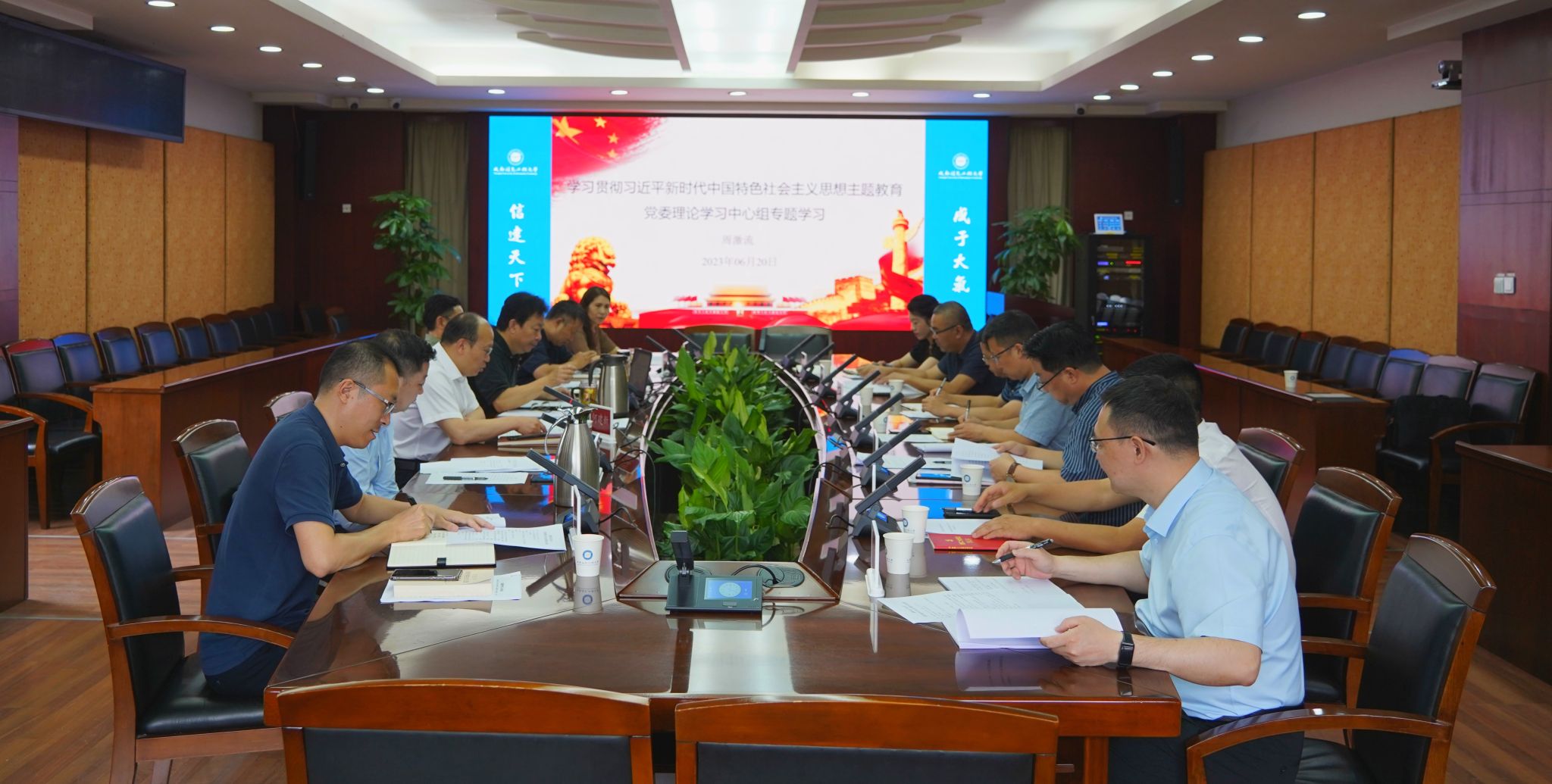 【本网讯】6月20日,学校党委理论学习中心组举行学习贯彻习近平新时代中国特色社会主义思想主题教育专题学习会,围绕“不断提升政治能力、思维能力、实践能力”开展专题学习,学校党委主题教育领导小组组长、党委书记周激流主持学习会。