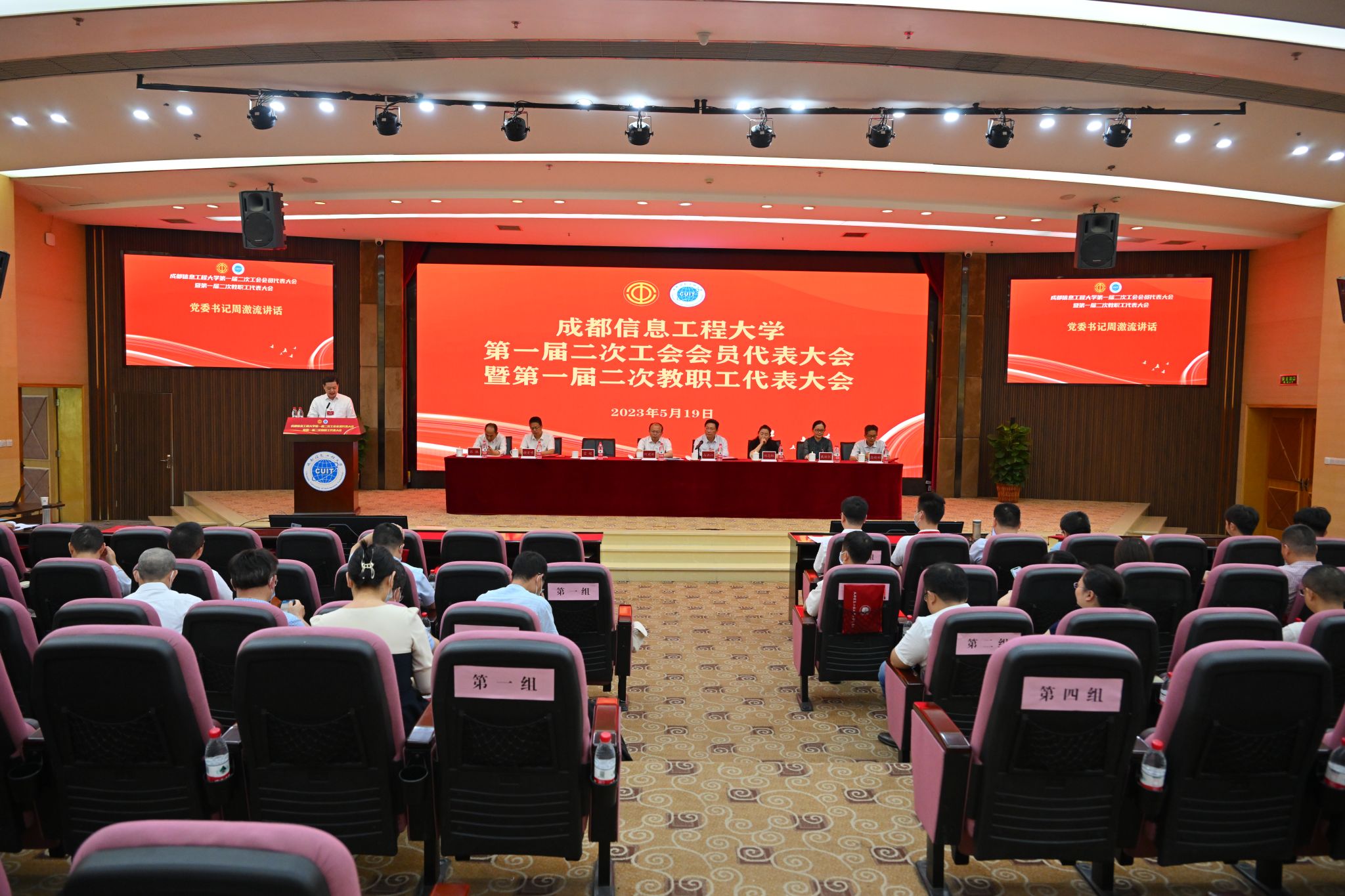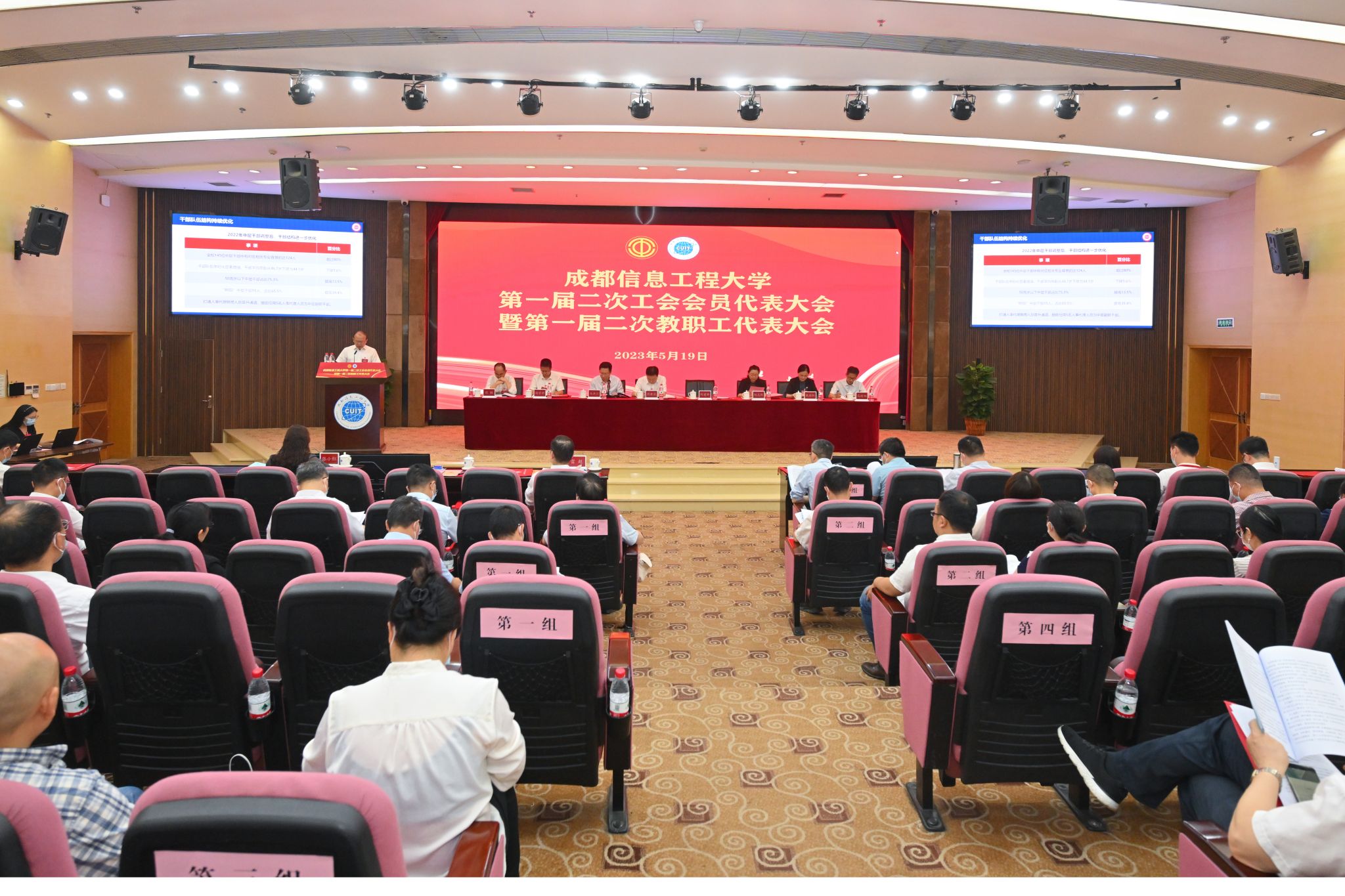 第一届二次工会会员代表大会暨第一届二次教职工代表大会在激昂庄严的国歌声中开幕。