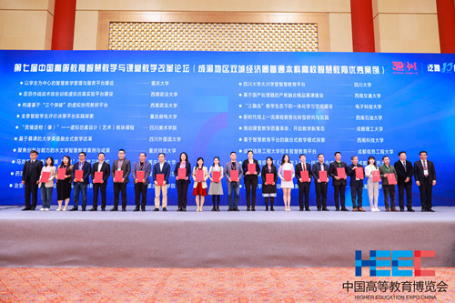 周激流为“成渝双城经济圈普通本科高校智慧教育优秀案例”获奖者颁奖