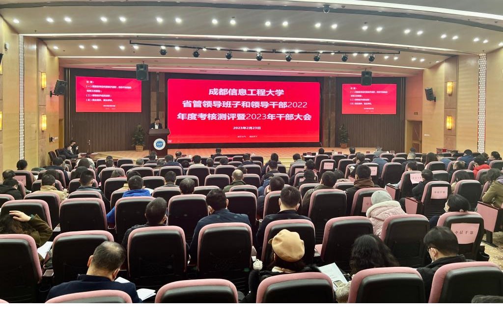 【本网讯】2月23日下午,学校在航空港校区国际会议厅召开春季学期干部大会,本次大会共分为两个阶段:第一阶段为省管领导班子和领导干部2022年度考核测评大会,第二阶段为2023年工作部署。全体校领导、党委常委,党委委员,中层干部,职代会、教代会负责人,市级以上党代表、人大代表、政协委员,民主党派在校负责人,三级以上专业技术职务人员参加本次会议。党委书记周激流主持会议。