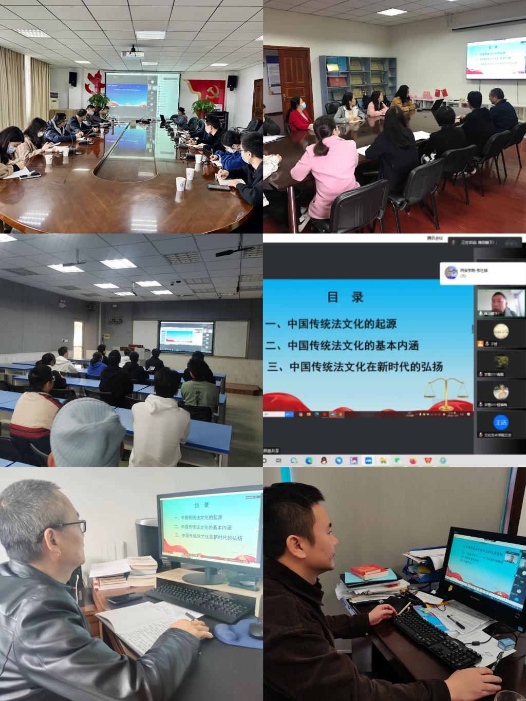 邓大鸣以“中国传统法文化及其在新时代的弘扬”为题,围绕“中国传统法文化的起源、中国传统法文化的基本内涵和中国传统法文化在新时代的弘扬”这三部分内容,在线与师生一同探析了中国传统法文化产生的源头和路径,中国传统法文化随着时代背景和生产力以及生产关系的变化而产生的重心迁移,中国传统法文化的基本内涵和在现实生活中的影响力,中国传统法文化在新时代的传承与弘扬等内容。他以专业的角度,结合生活实例,深入浅出地阐释了中国传统法文化积极丰富的内涵,并强调中国传统法文化有其产生的历史必然和深厚根基,在新时代传承和弘扬传统法文化对构建法治社会具有极大的积极意义,万不可摒弃自身的传统和历史,而去一味盲目地学习西方,照搬照用,而是要与时俱进、因地制宜地结合自身实际,扬其精华,避其糟粕,才能走出一条符合中国特色社会主义法治之路。