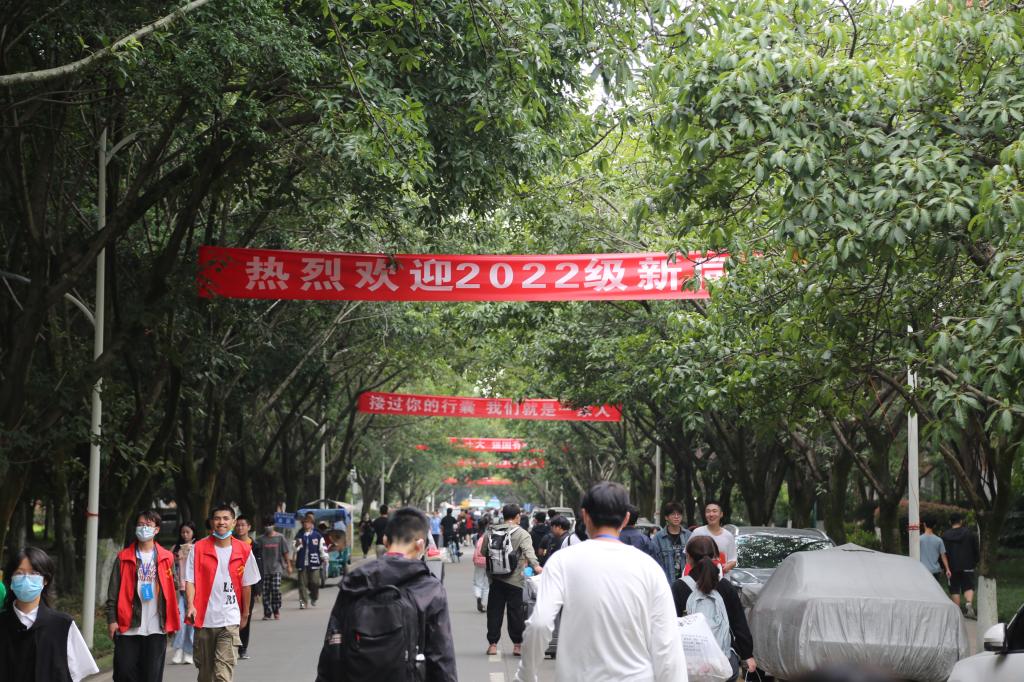 在航空港和龙泉两个校区内,鲜艳的欢迎横幅和合影墙、精神抖擞的迎新工作人员、热情洋溢的志愿者们营造出欢快热烈的氛围,喜迎来自全国各地的2022级新同学。