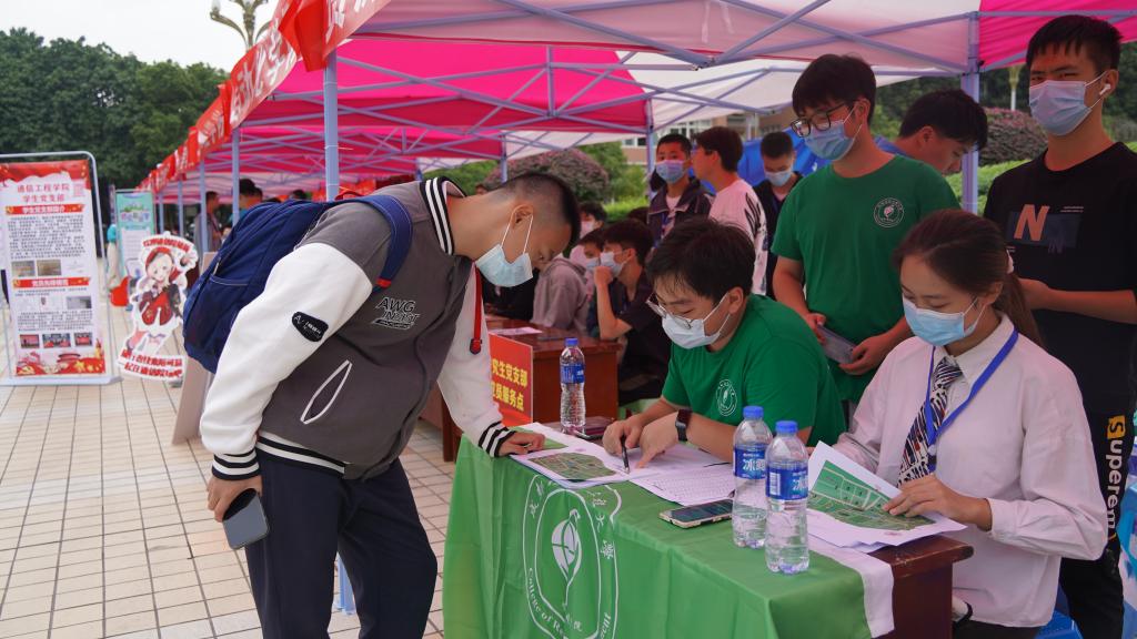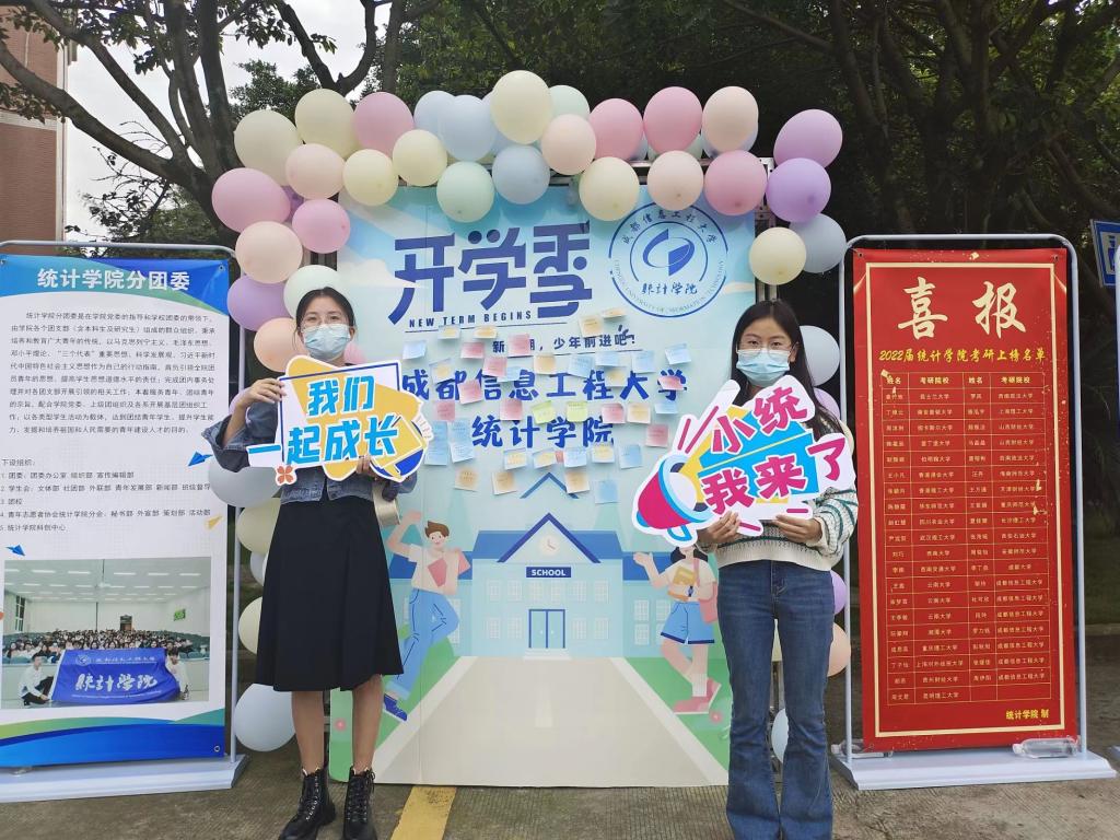 在各学院报到点,“等到你,真好!”“链接未来、智汇天下”“二进制写尽天下事 成信人共书新开始”“星辰大海创意车票”等暖心、奋进的欢迎喷绘不仅是学院对同学们“浓情蜜意”的开学问候,也彰显着学院发展的精神内涵,吸引了同学们纷纷驻足合影留念。结合专业文化和特点,各学院推陈出新、精心准备了特色的入学报到“彩蛋”:大气科学学院开展了新生畅言理想活动;区块链产业学院开展了新生祝福祖国、献礼二十大主题活动;电子工程学院、自动化学院在报到现场展示了师生部分科创作品、科研成果,使新生对自己的专业和学院有了更直观的认识。