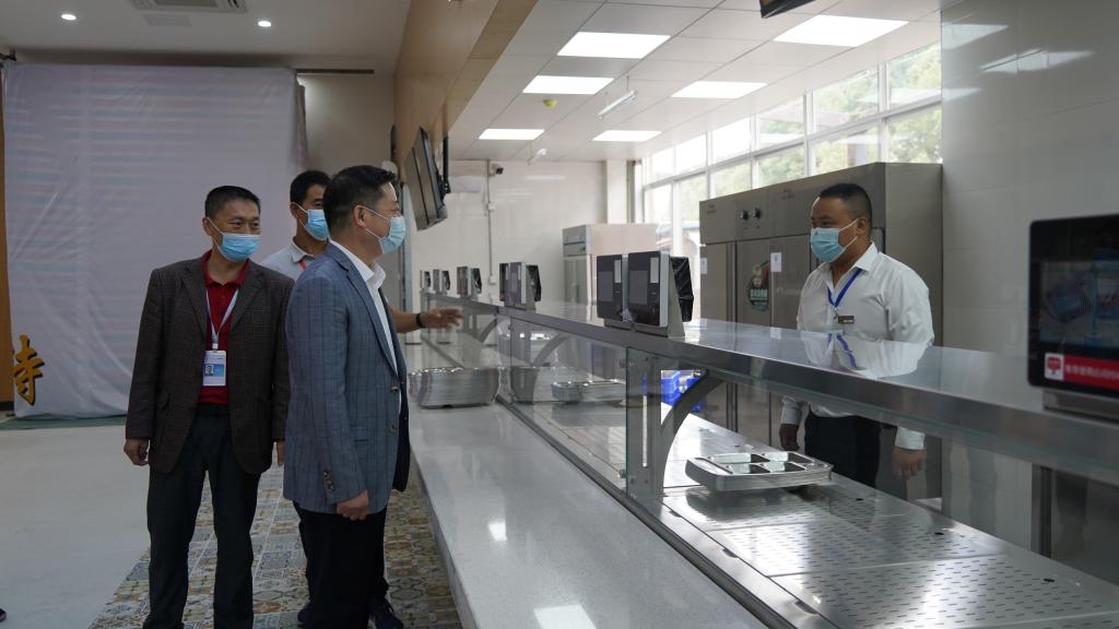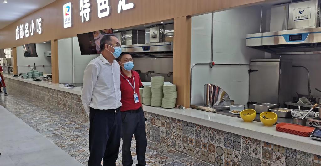 9月29日,学校校长余敏明,省纪委监委驻校纪检监察组组长、学校党委副书记、纪委书记雷超先后来到二食堂现场检查指导试运营情况。